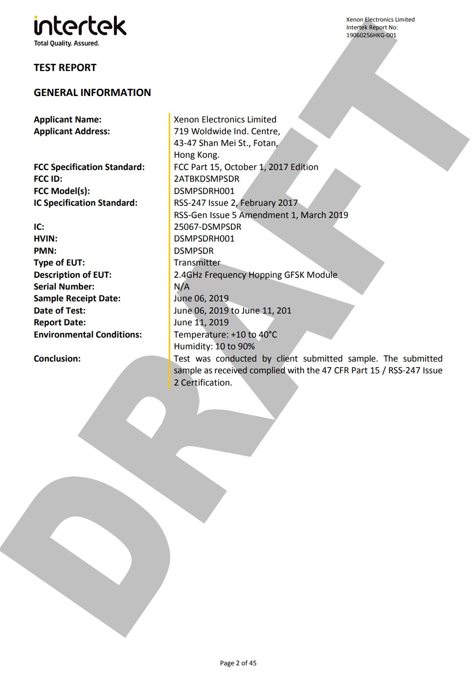 What I like to see though is the Intertek draft with the CE approval, this is the FCC one.