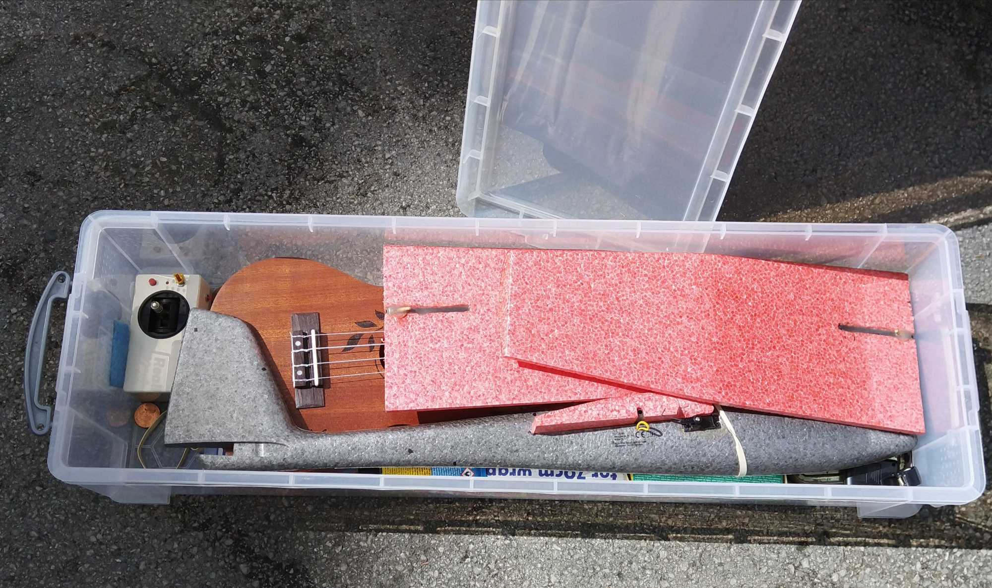 It lives permanently in my van with a twisty-wing Lidl Glider and a Ukulele