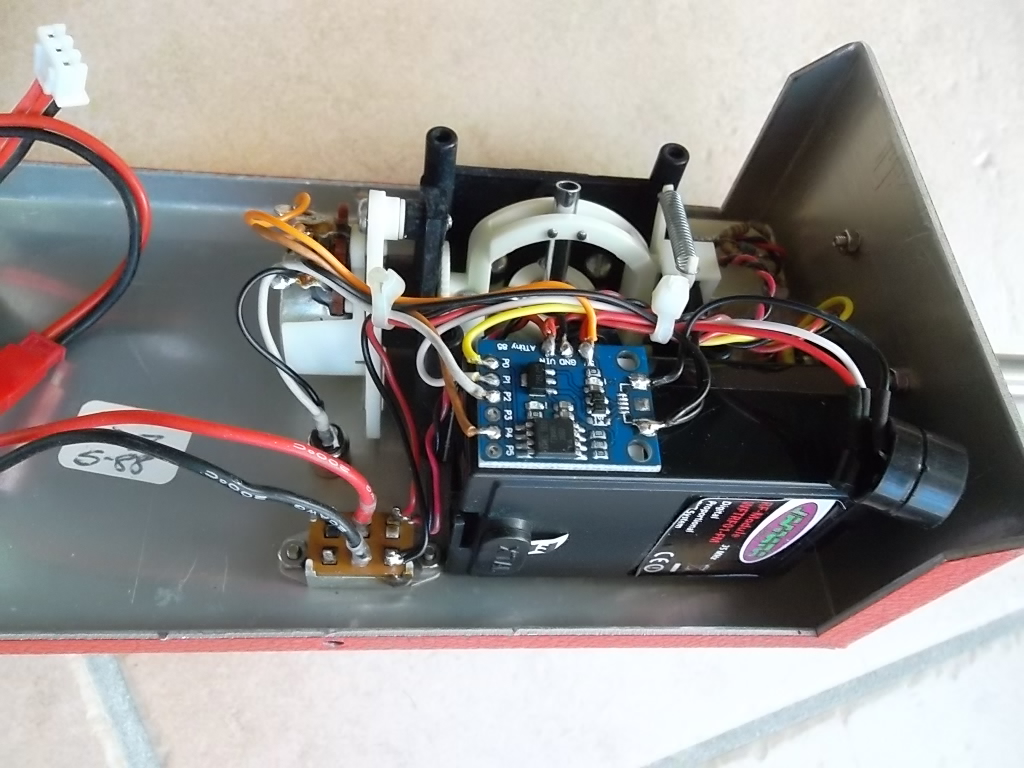 Here is on of my latest conversions, an ACE Pulse Commander. It uses Phil´s latest Digimac MK3 sketch without the trim function, which is not needed here. Flight test happened already flying a Sharkface with Tobe´s Adams clone. No problems, everything worked perfectly.