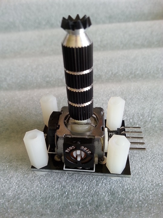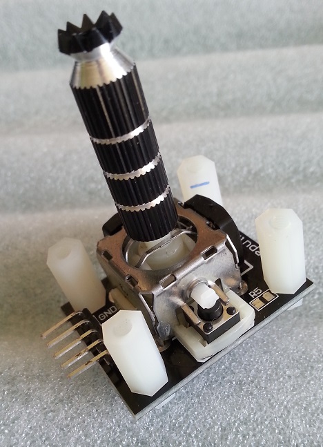 Being 'frugal' (i.e. a tight ar :o) and having a few in my components box, I've decided to use a dual axis game console PS type stick assembly - since I only need a single axis, a slotted hole in the case will effectively 'remove' the 2nd axis function.
