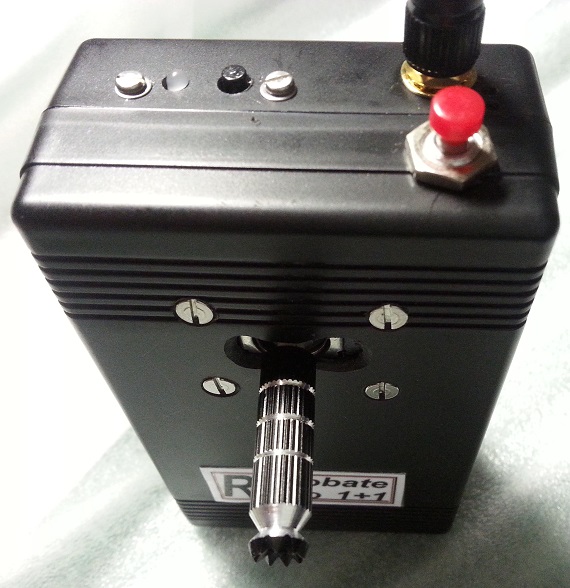 Throttle: Exactly like the original 27Mhz 1+1 the throttle is sequential with low, mid, high and back to mid in a continuous cycle. Every brief dab of the button moves the throttle to the next setting. Selecting low sounds one pip. Mid sounds two pips. High sounds three. This lets you know where the throttle is set. The throttle can be instantly cut from any position by holding the button briefly rather than blipping it, this was Franks idea (thanks Frank!)