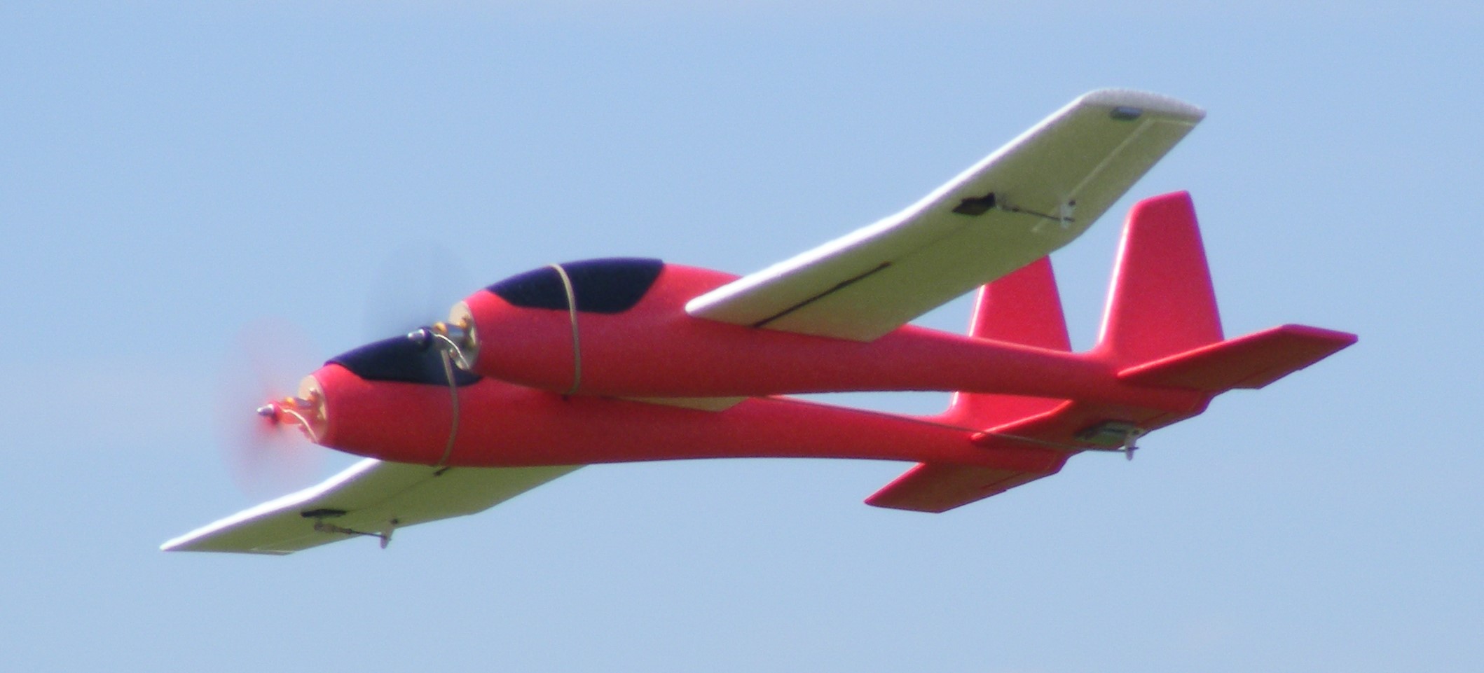 Spotted at our patch today. LIDL Twin. 2x 100W motors. Goes like stink ! Conventional Ailerons and Elevator. No rudder but differential throttle instead (subject to ongoing experimentation)