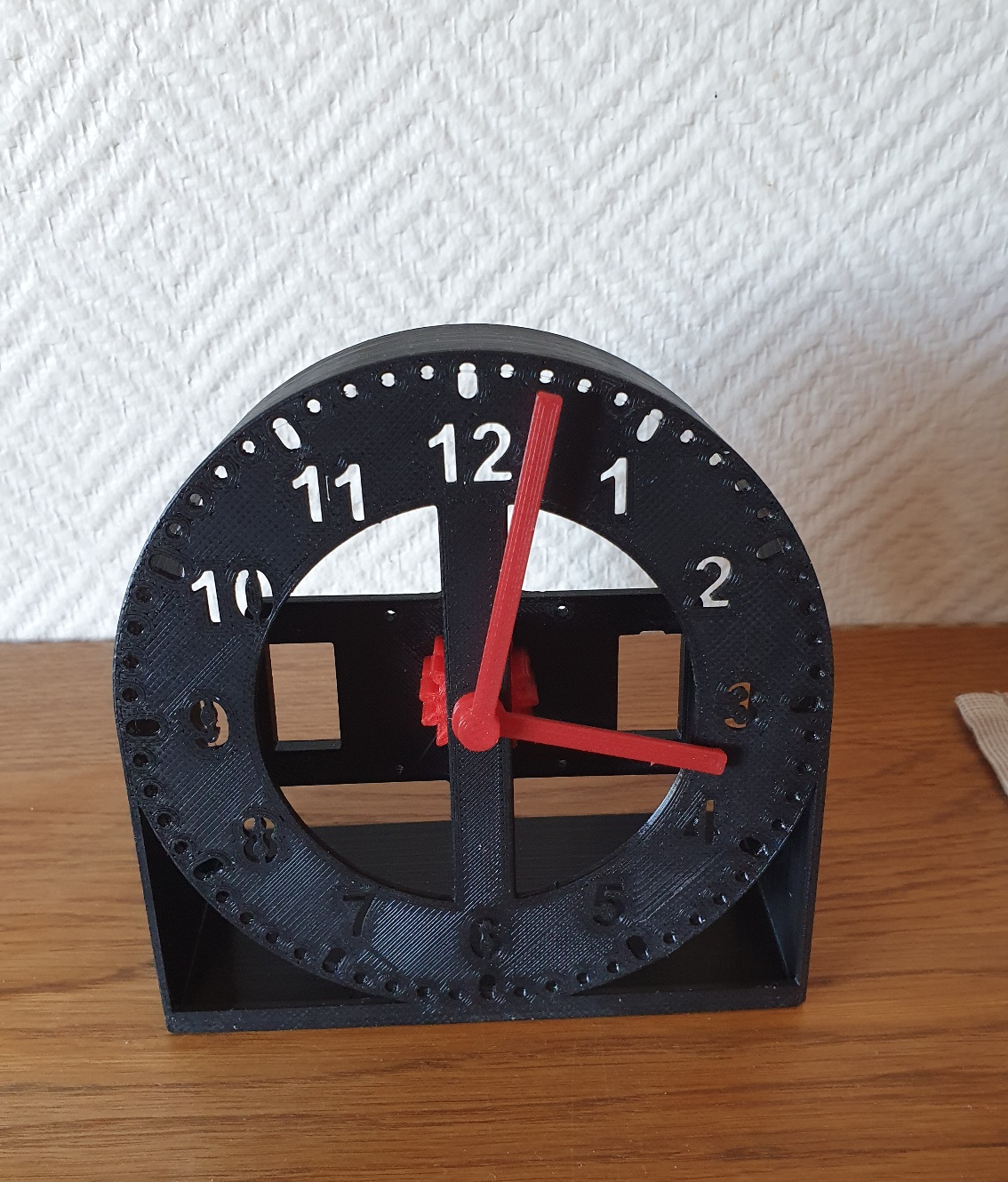 To test out the servo drive routines and the WiFi connection, I designed and 3D-printed this little clock.