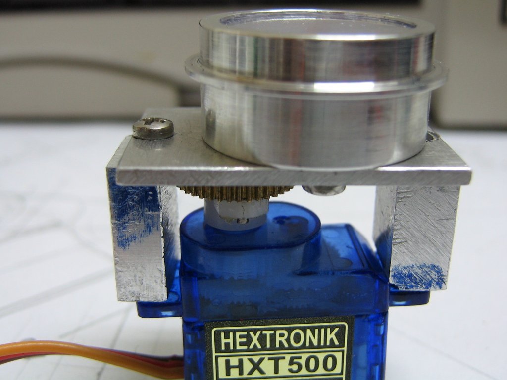 Tacho is operational, being a 0-5V signal derived from the flywheel pulse. Originally this was a frequency to voltage converter driving a series of LED's arranged in a circle on the dash but I later changed to the present servo driven gauge. Still uses the original converter but now, with a very simple picaxe code and some mapping and gearing, voila. Steering wheel also turns as the rudder turns.