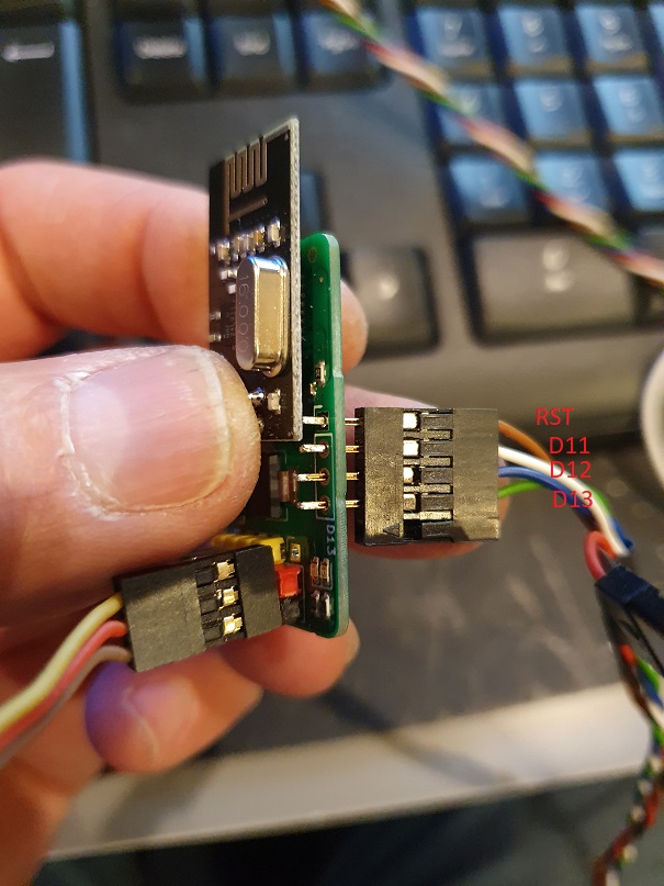 They runs straight forward with Phil's nRF24 project and here comes a pic in how to connect your USBASP to the Rx as the Tx has regular ICSP.