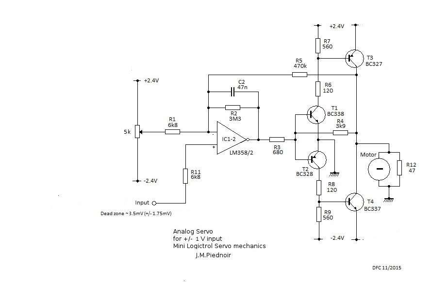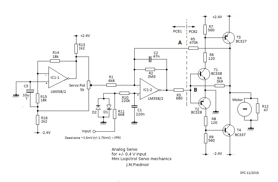 This gave me a chance to test my improved analogue servo design with a actual radio, which led to simplification of the schematic compared to the one published on page 22 of the the Norcim site.