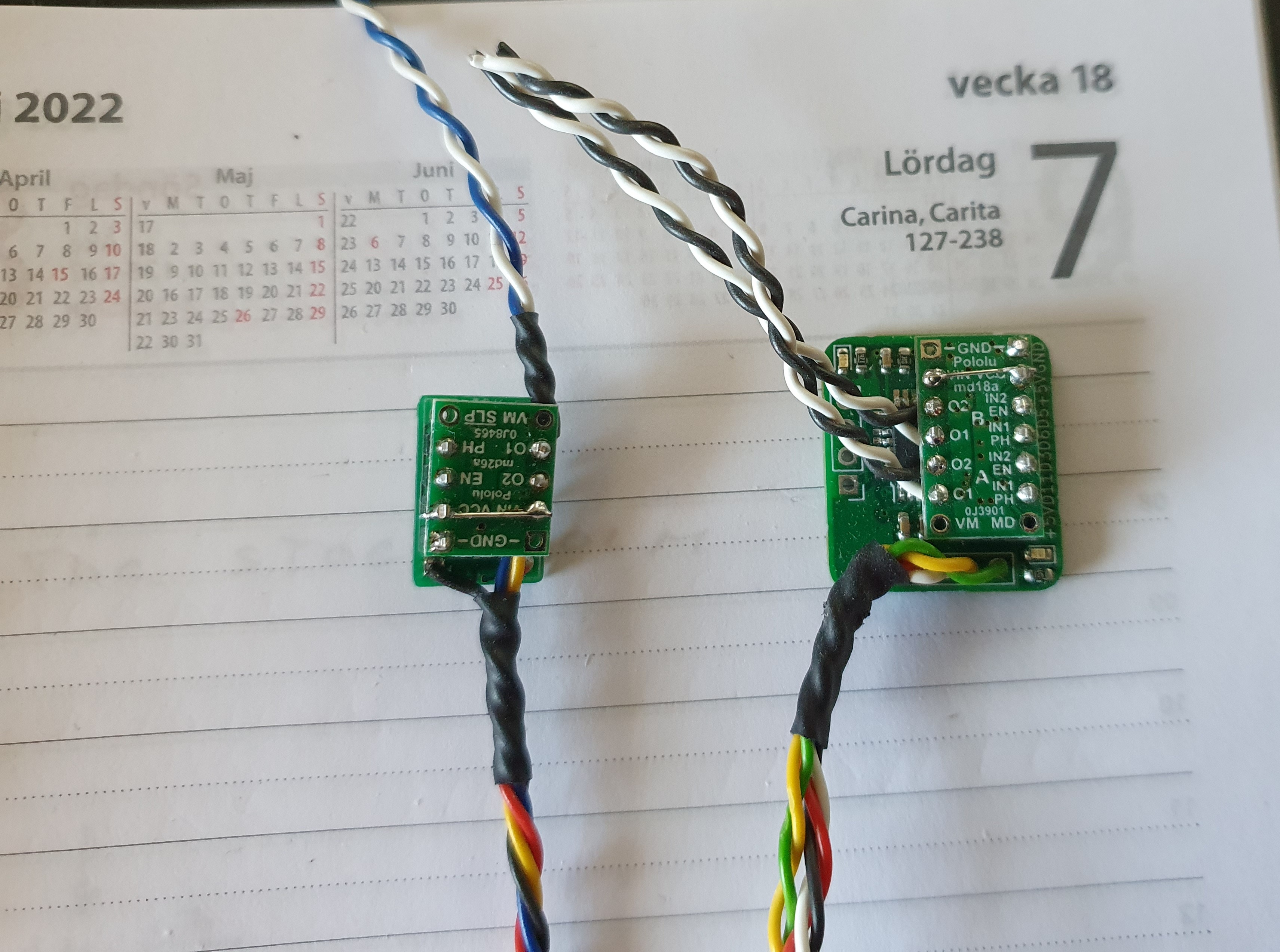 Following Martin's extensive bug-searching report above, I connected my (suspect driver failed) ATtiny85 pulser to Rx outputs again to see if grounding the RST pin did anything. Before powering up, I removed the heatshrink then turned on Tx then Rx (Orange Tx module, Spectrum Rx). Before even touching RST, the board sprang into life and it GG waggled as it should with no hint of one-way drive failure. RST was grounded a couple of times and, when released, normal operation immediately resumed. AUX control from Rx channel was exercised over 0% to 100% with no hangups (so far).