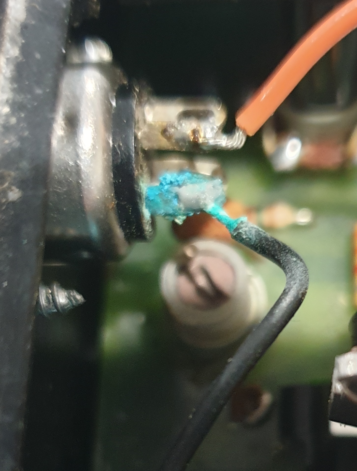 After taking some piccies, I stripped it down, cleaned everything and set about reassembling the hardware. There was bad negative lead corrosion, fortunately removed along with the original circuit board.