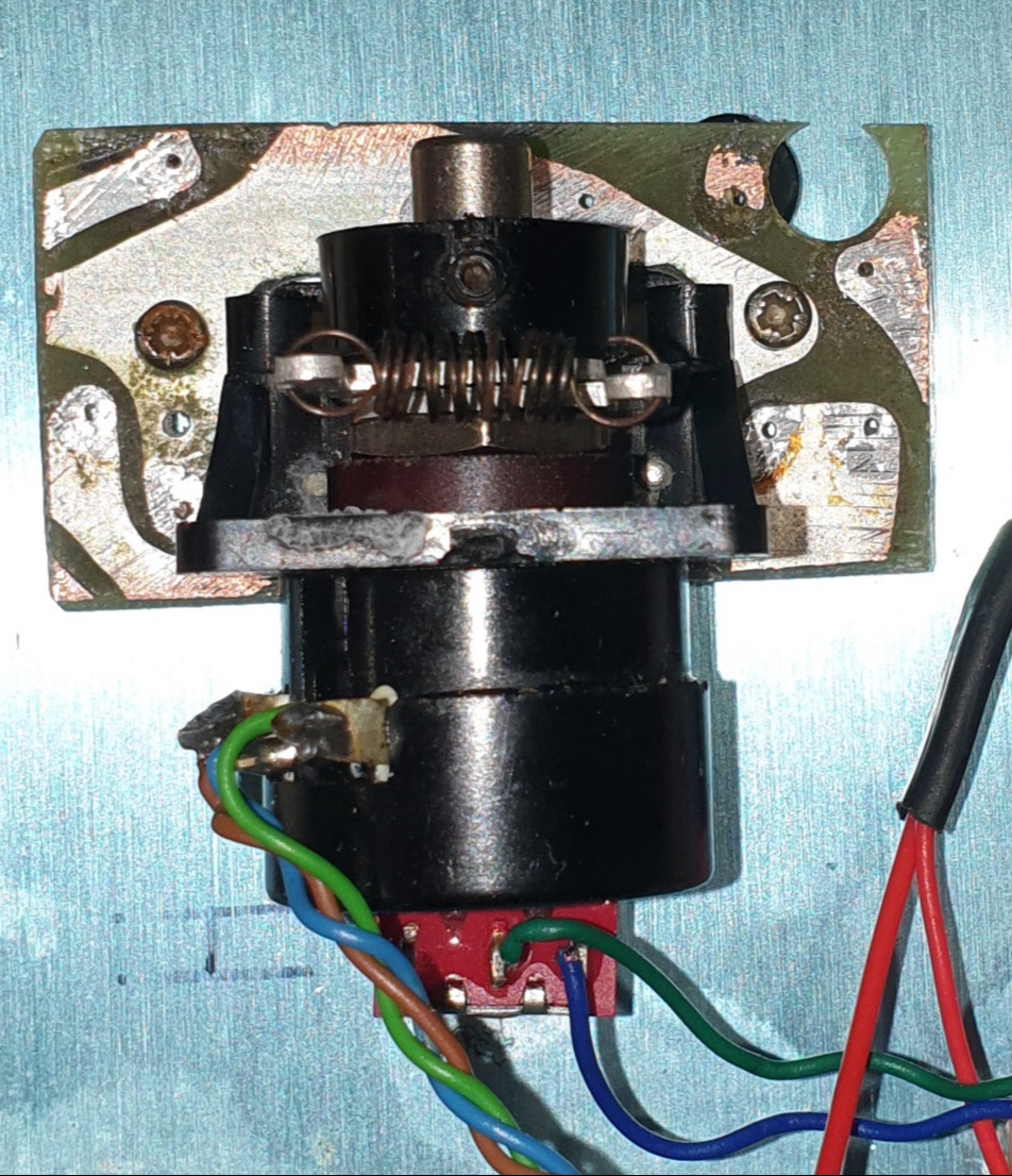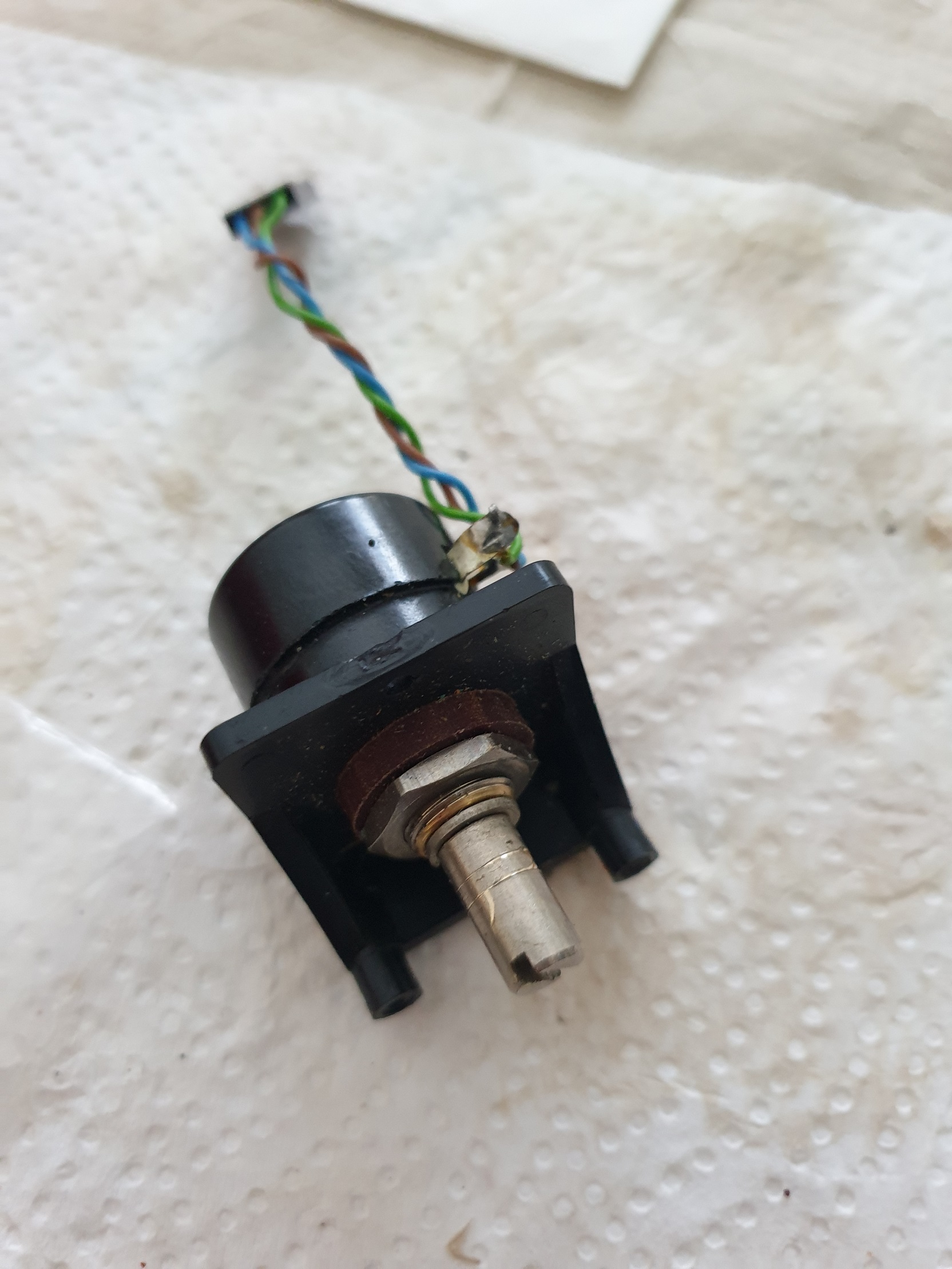 the original stick pot on its mount, which screwed to the PCB then front bezel