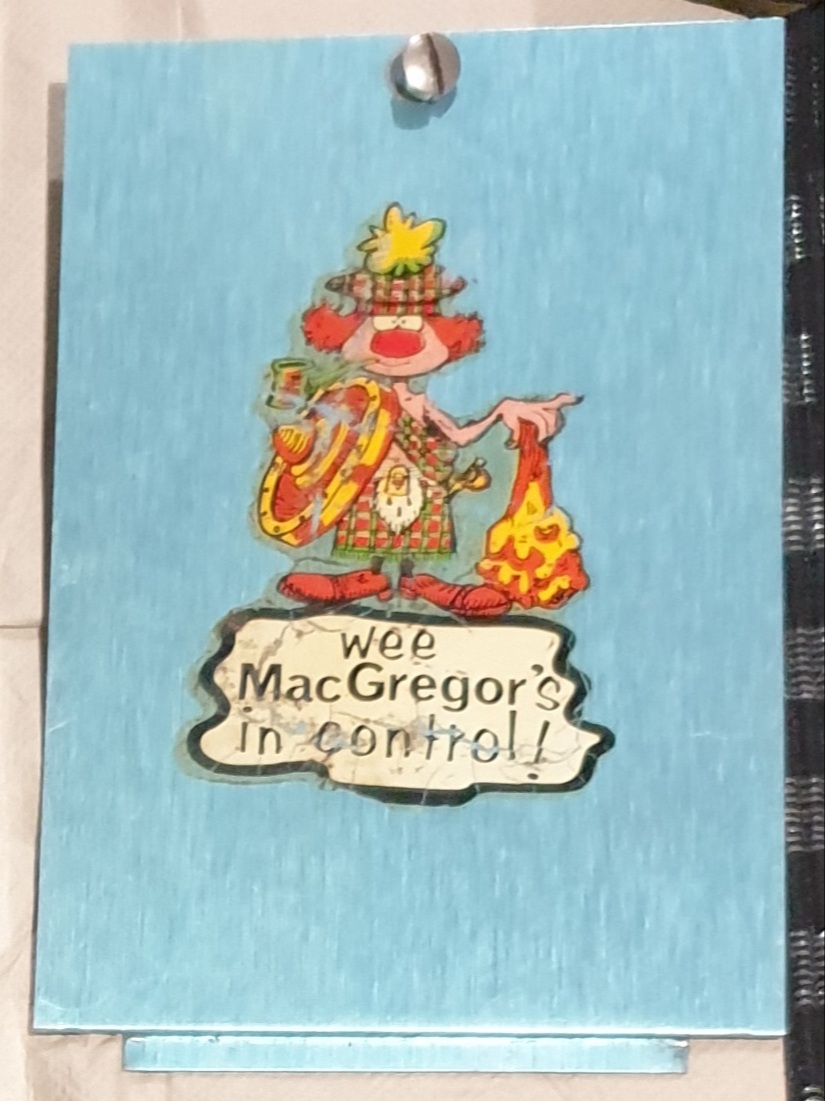 Never having seen any MacGregor set in the flesh before, I spent some time examining it, before starting on restoration & gigification. The Tx has had plenty of use, the silk-screened artwork being very worn in places. The Wee Mac transfer on the back has also seen better days. Does anyone have the artwork for any of these items?