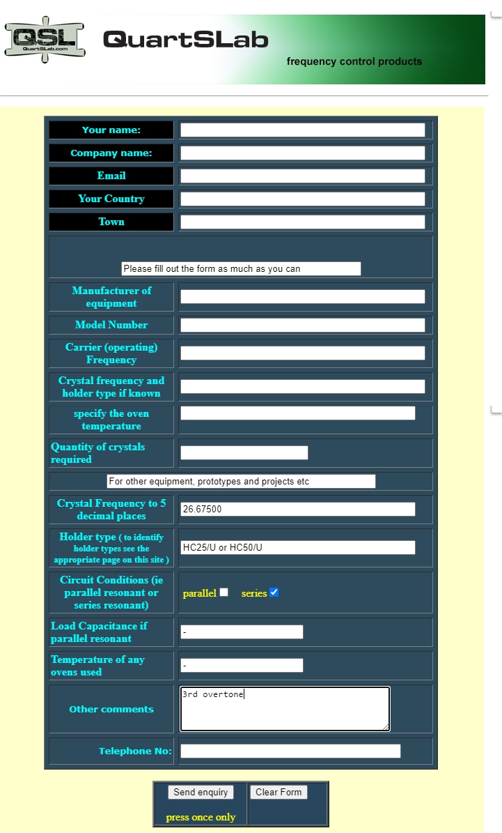 Say you have an early Macgregor superhet with the 470k IF. Suitable transmitter crystals are ten a penny but receiver crystals for a 470k IF are rocking horse poop. Quartslab will cut you a brand new one for £12. Actually theres a minimum order of two but thats ok, they dont have to be the same crystal.