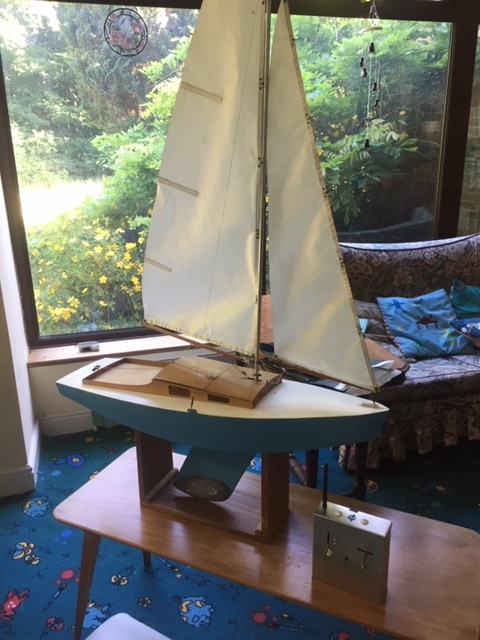 Here's my ancient but serviceable Starlet (the Vic Smeed one from the '60s not the earlier '40s one). Originally built with a modified RCS Guidance System single channel to provide proportional rudder and sails in/out on two buttons. Back in the day it used mark/space and fully on/off to drive relays and a damped WW2 aircraft indicator linked to a motor/gearbox for rudder with Marx mini richard for the sail winch. Very effective and sailed at Prince's Park Eastbourne, didn't matter about radio interference, there just weren't any other boats around! Now updated to 2.4 Ghz with later homemade ali case (+ Arduino and Frsky DIY), first sail at Chipstead lake Sevenoaks a couple of weeks ago. All inspired by Phil_G, P Luby and other members of the forum so big thanks to them.