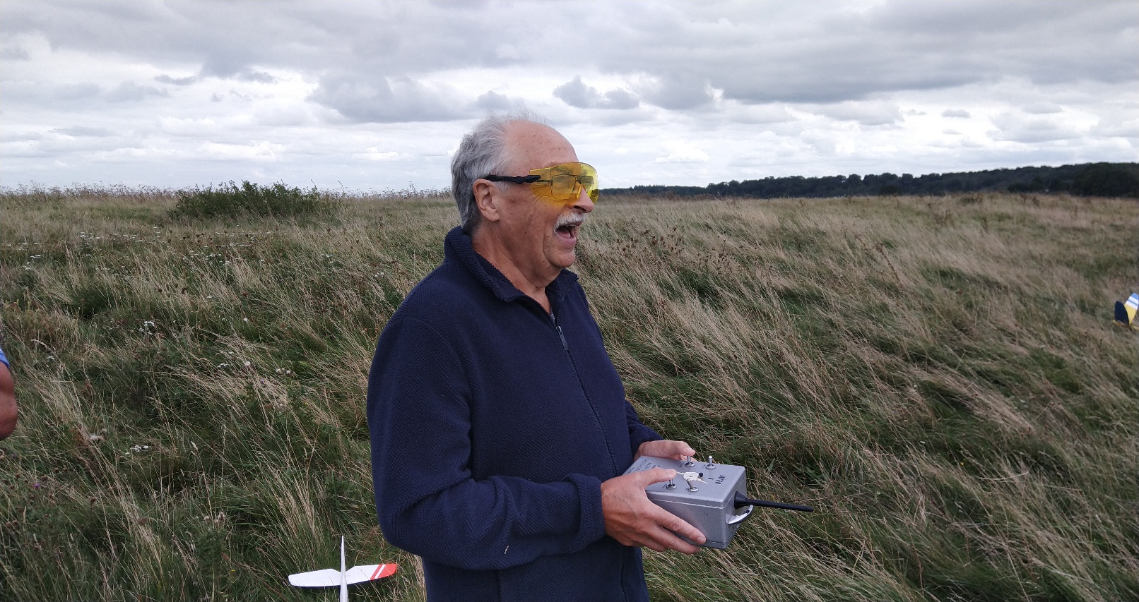 Ken, a seasoned local flyer, was curious about our retro kit and had a Reeds transmitter