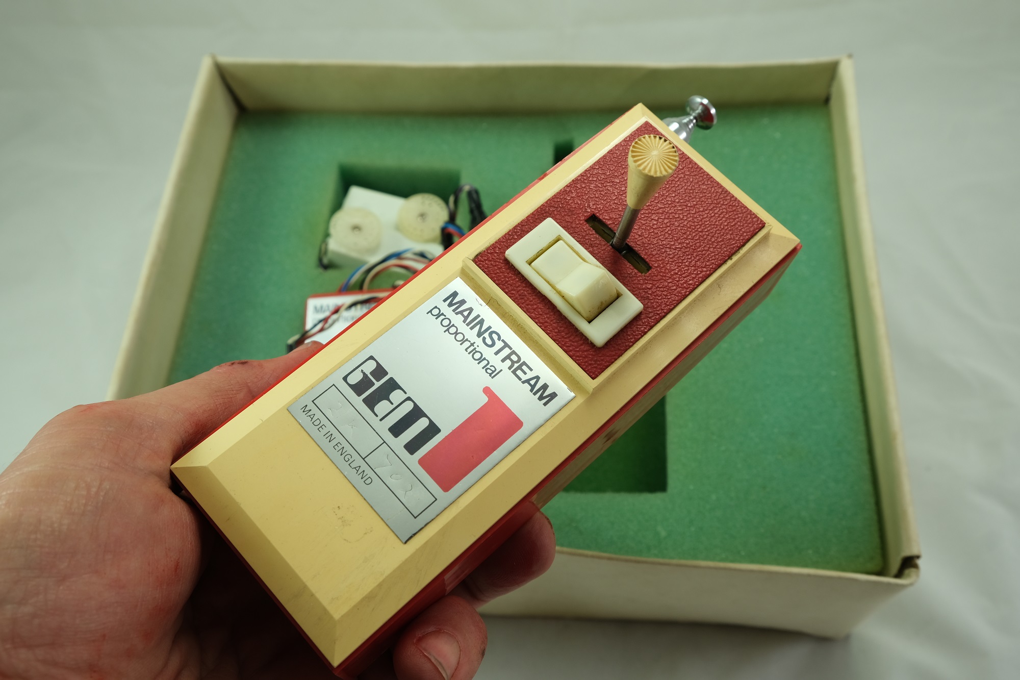 I think Mainstream and GEM were both brand names of F&J distributors. Mainstream originally made Simprop sets under licence in the UK, then brought out GEM as their budget range. They were supplied with GEM labelled Simprop servos. I think Shaun has a metal cased GEM with Bonner joysticks and I have a metal cased GEM with SLM joysticks. The Tx and Rx circuit board layouts and components are very similar to a Simprop Alpha.