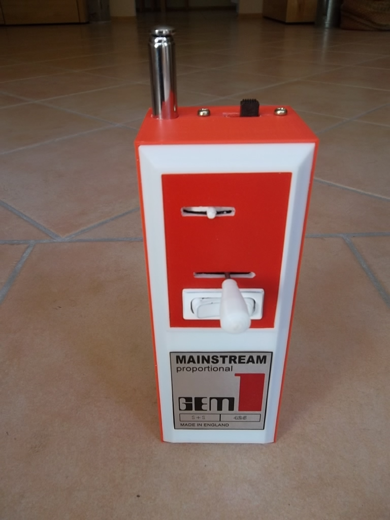 This are the files for the Mainstream 1+1 GEM transmitter. Three parts, base, main case, top.