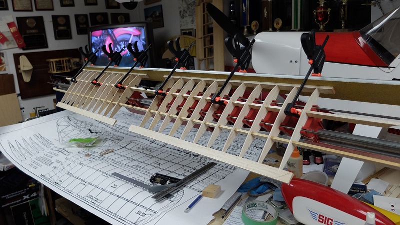 Slapped them into my wing jig & glued in the spars etc.