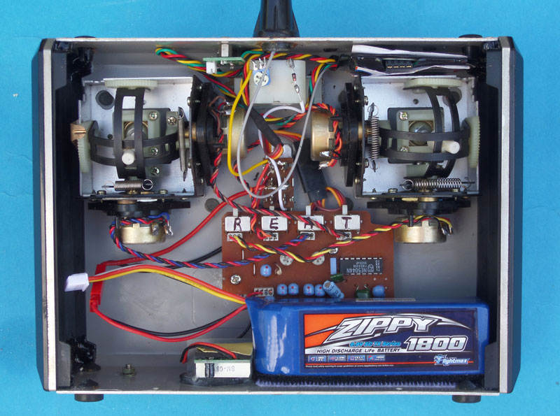 Internals - uses a Futaba encoder from an 'Attack 4' (conversion predates availability of Phil's encoder), and a Frsky module: