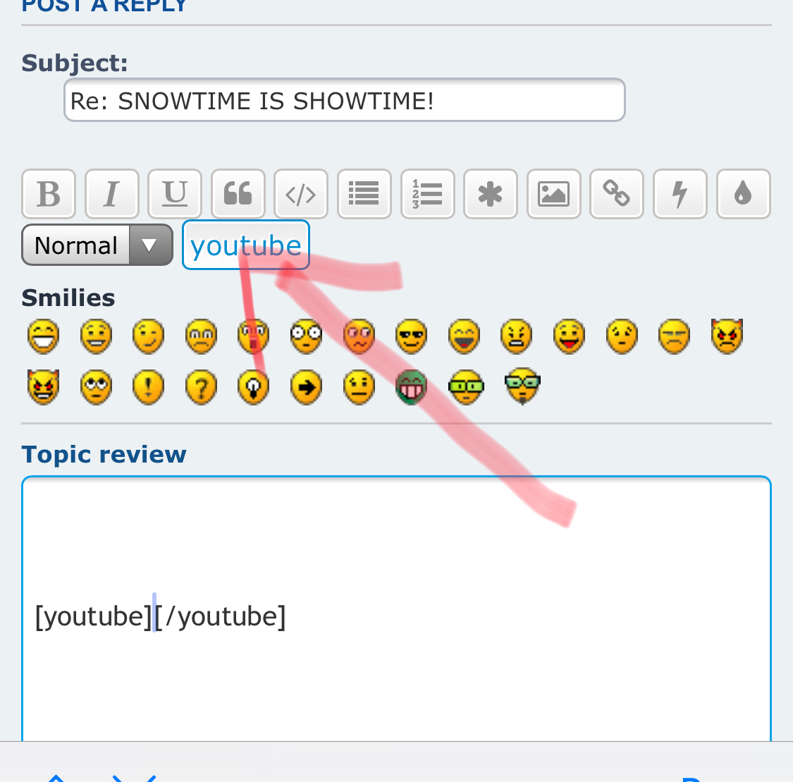 Upload your video to YouTube first then use the YouTube button on the toolbar on this forum. Make sure you use the embedded link and paste it between the square brackets that appeared when pressing YouTube button.