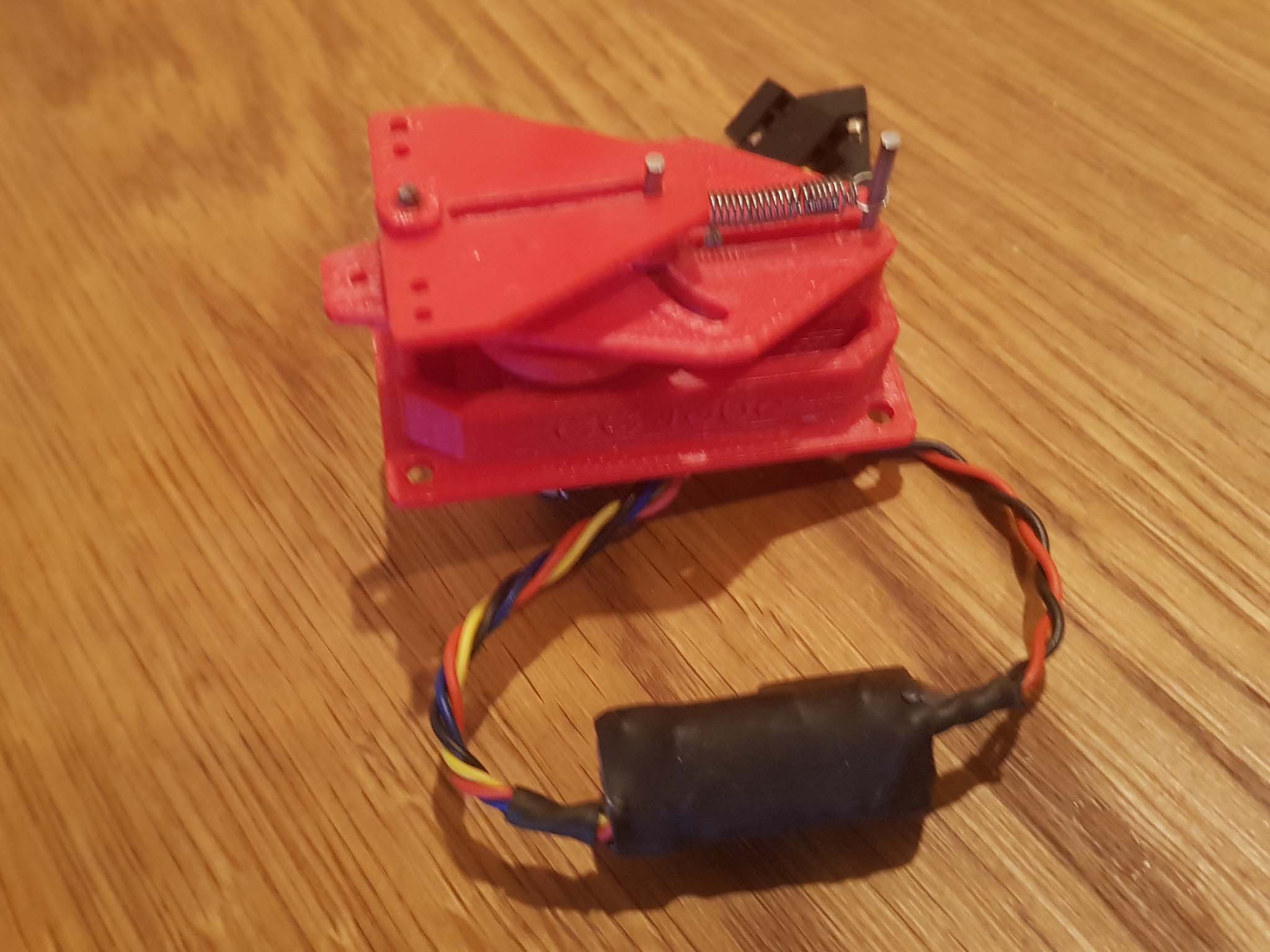 It consists of a "Rand clone" actuator, designed, 3D printed and assembled by Tobe, driven by PIC re-coder electronics which convert conventional rudder & elevator channels into a variable mark/space and rate pulser with a high current FET bridge to drive the actuator. Tobes "Rand clone" is superb and emulates the original in every way other than it has no throttle mechanism - that comes direct from the receiver throttle channel.