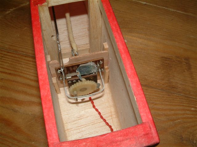 Just to make it clear, it wasn't pleasant to fly because it was tail heavy, nothing to do with the escapement and electronics set up. I should have selected the balsa a little more carefully for the back end.