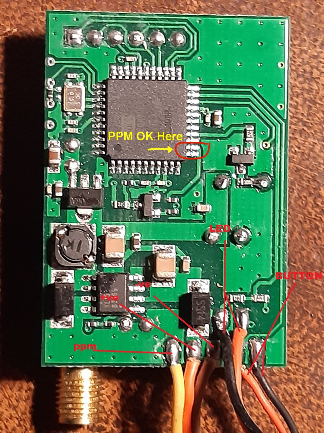 Clive has had a run of bad luck with tranny builds so I'm trying to help him out, but the OrangeRx DIY module he sent is completely dead, no led, no beeps... I'm wondering if its been wired correctly at the factory - does anyone have an internal photo showing where the wires go please? The pos/neg/ppm cable seems ok but I'm not sure about the button and led connections. Is there anything else weird about the Orange DIY I should know about?
