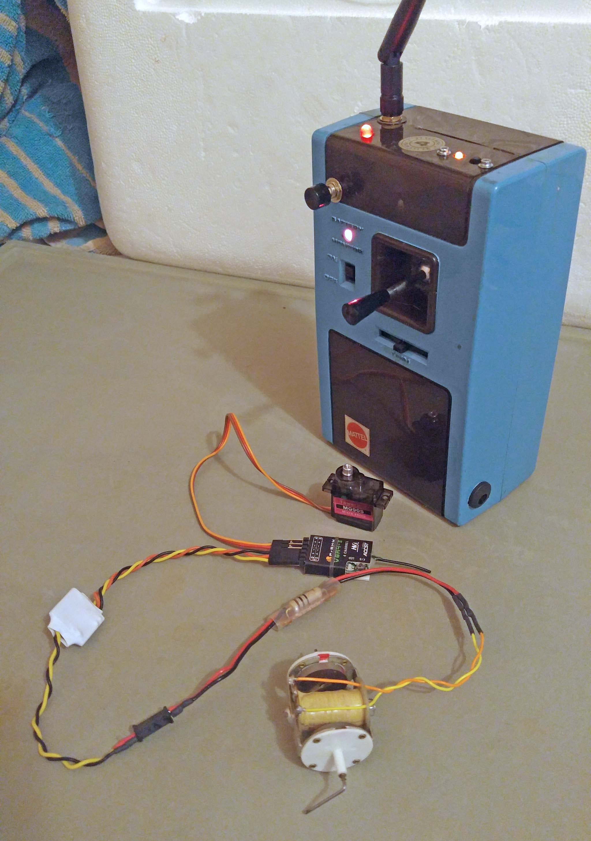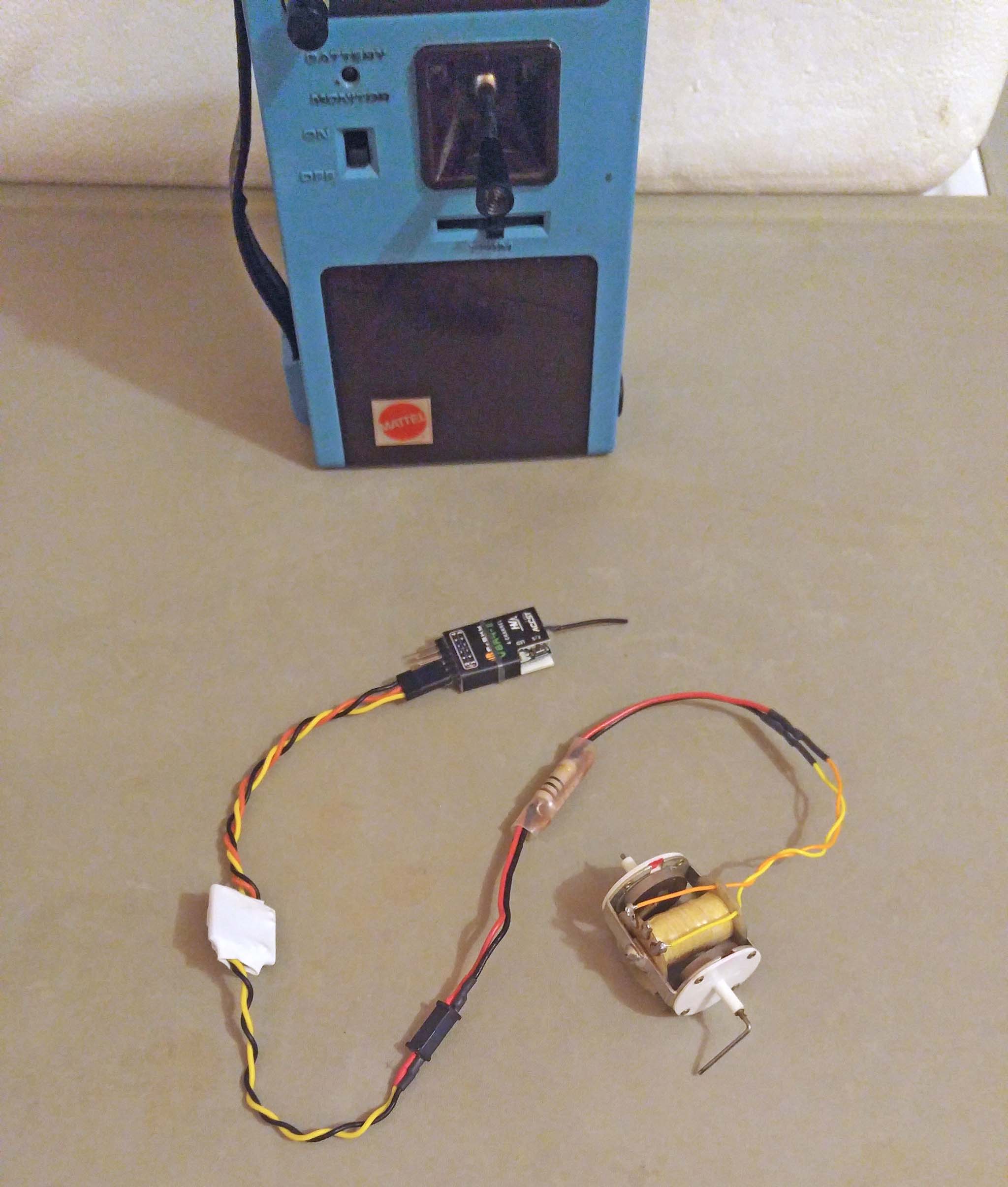 Finally got my Mattel transmitter conversion completed. Used Phil G Digimac 1+1. FYI the Mattel stick pot is 170K ohms! Had to put a 1Meg ohm resistor across the pot, a 100 ohm resistor on the ccw lead and a second 100 ohm resistor on the cw lead of the pot to get the system to work. Very pleased with the results. Nice! Also added one of Phil's pulsers with a 100 ohm resistor inline to an Adams actuator. It all works nicely. Now I've got throttle and a waggly tail! Now do I put in a School Master or a Jr. Falcon? Decisions.....