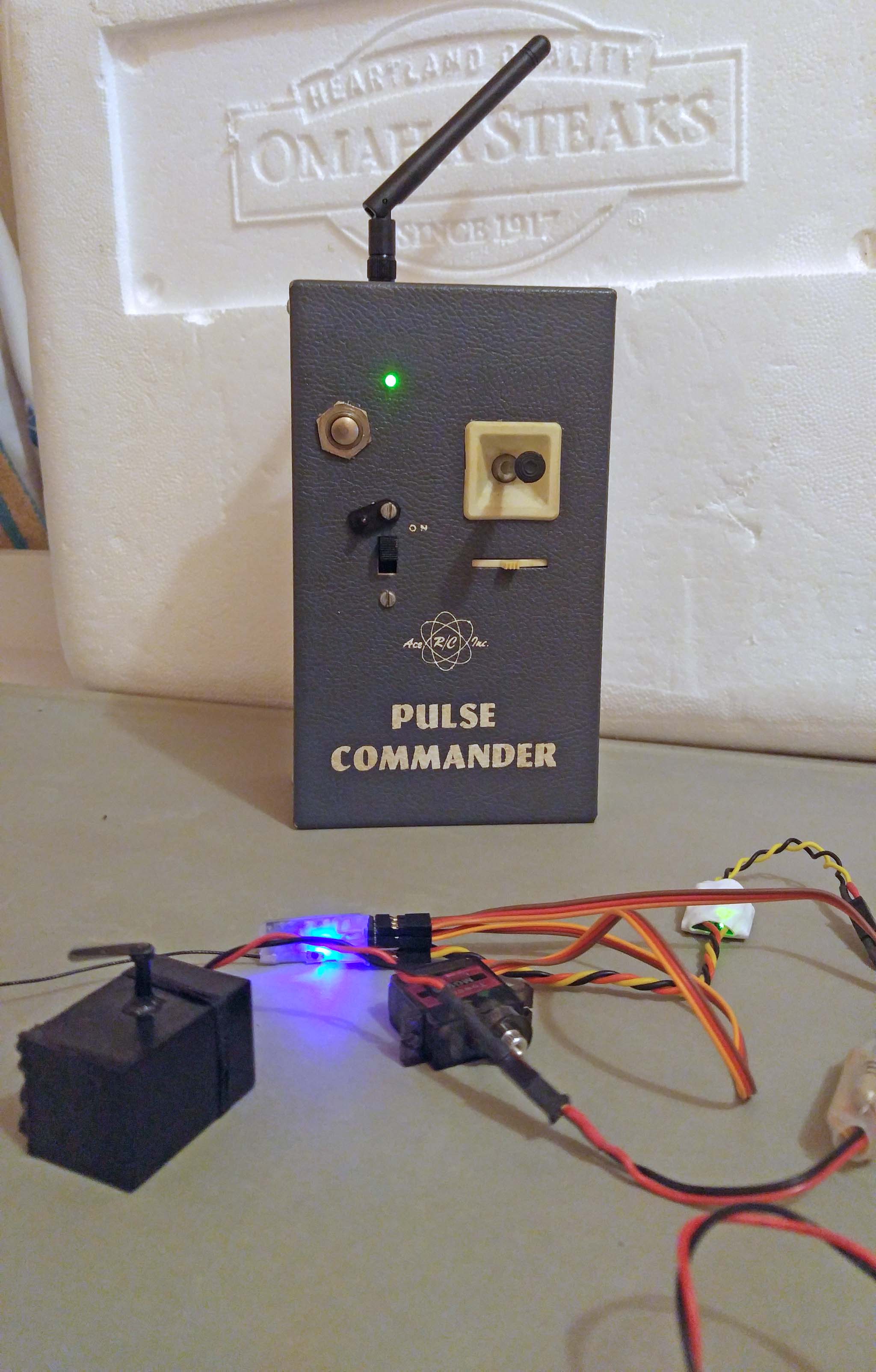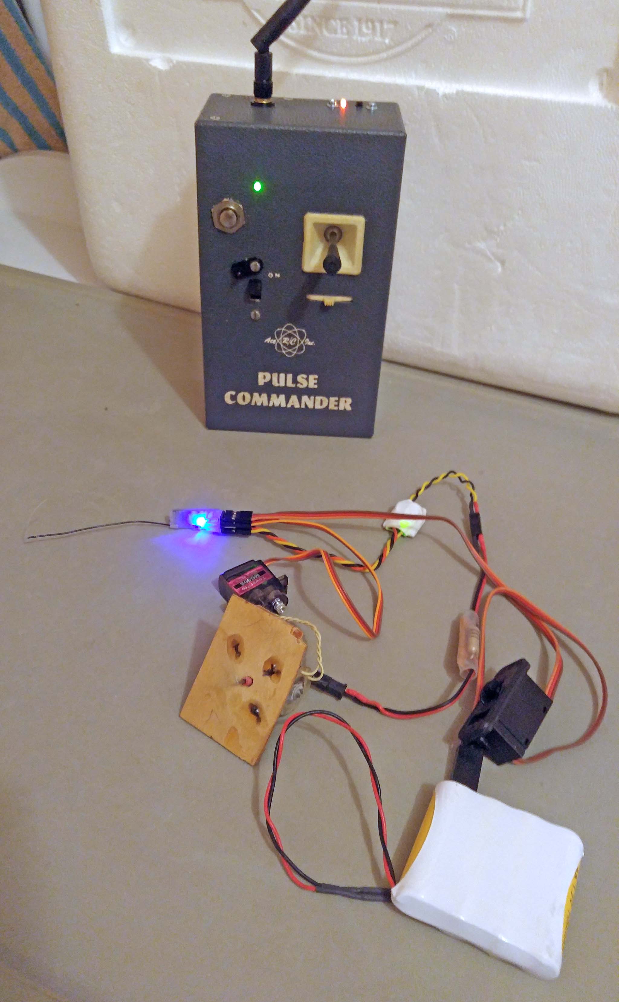 Tested with servo first. All good. Also tried one of Phil's onboard pulses with 100 ohm resistor inline to an Adams actuator. Also works with Southwestern RC actuator and (a nice surprise) an GO-AC GG actuator. A very enjoyable and satisfying project. This one might go into a BMJR Souix. More to follow. Thanks to all those who help make old school radio control fun again!