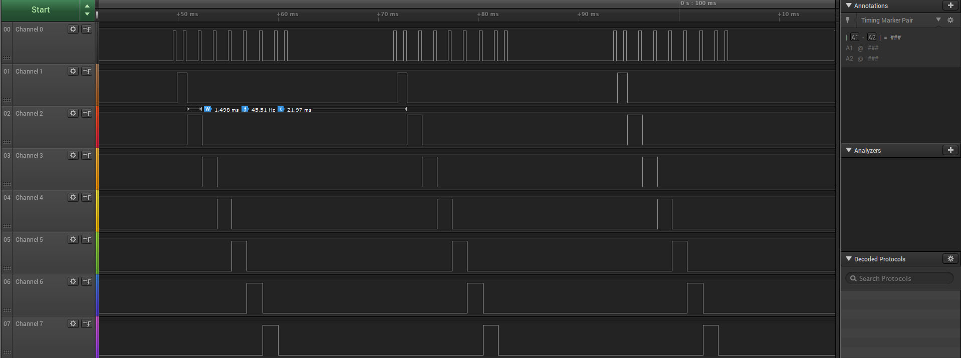 Phil_G wrote: 01 May 2020, 10:05 To display stable PPM on a scope you need a sync per frame - my siglent has 'trigger on interval' which I set to 3ms. That gives a rock-steady display. You cant trigger on pulses as they're not contiguous.