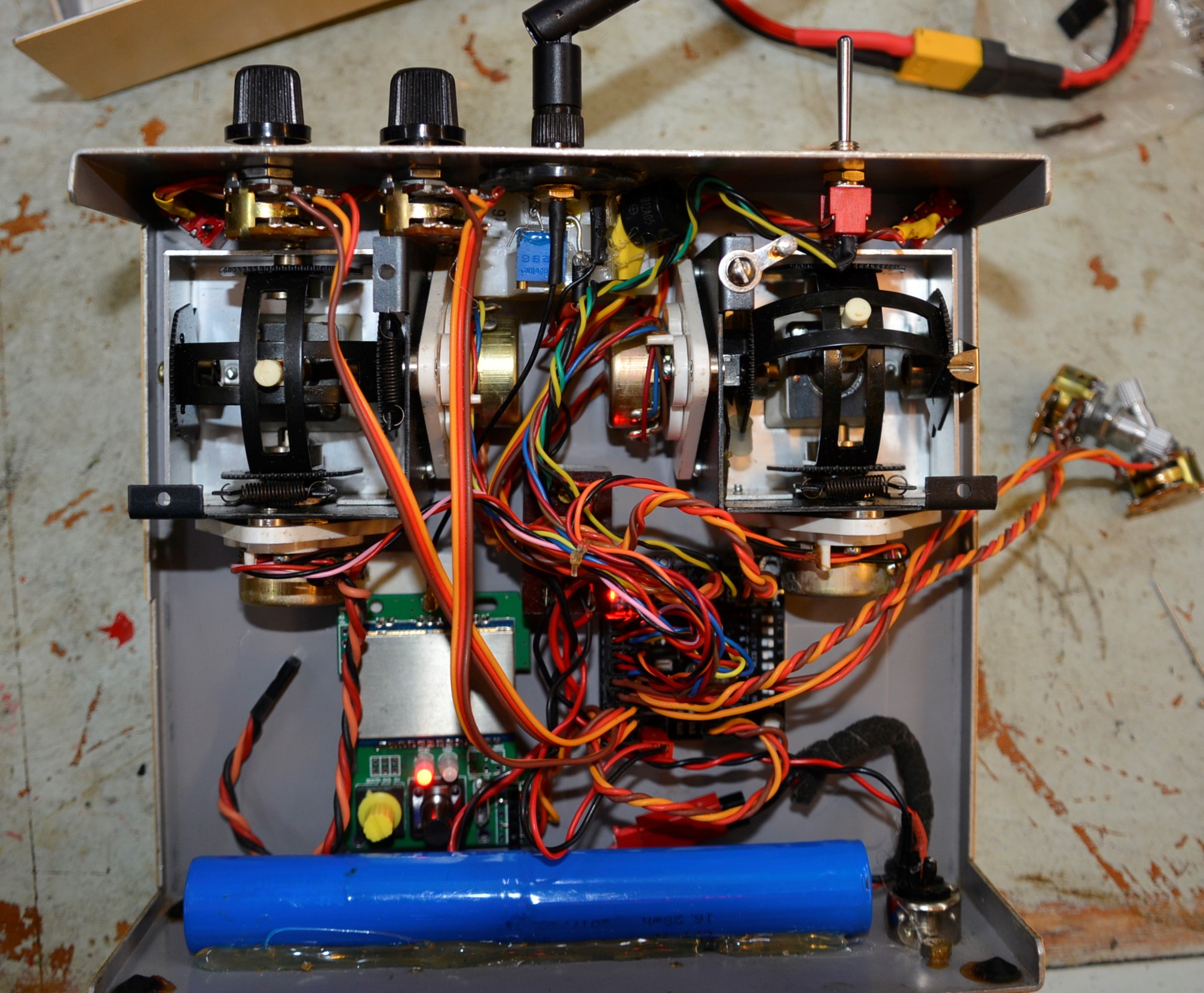 Used Phil's encoder and Banggood 4 in 1 multi protocol RF Module. 2 cell 18650 for power