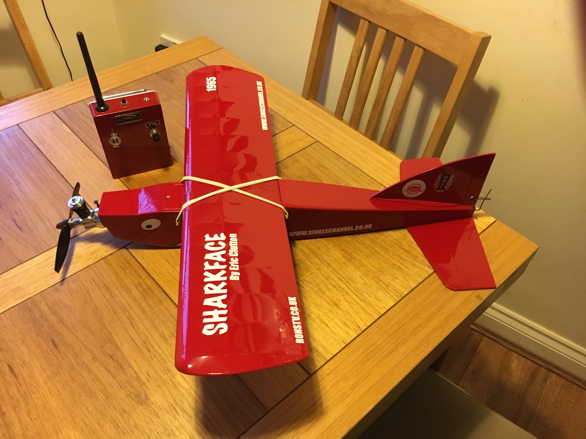 The first on the list is my S/C Cox powered shark face. This was built from a short kit from Igull. Its virtually ready to fly complete with Cox babe Bee, V8 RX and RX battery and a Savox digital servo. Its a real nice flyer as can be seen in the video below.