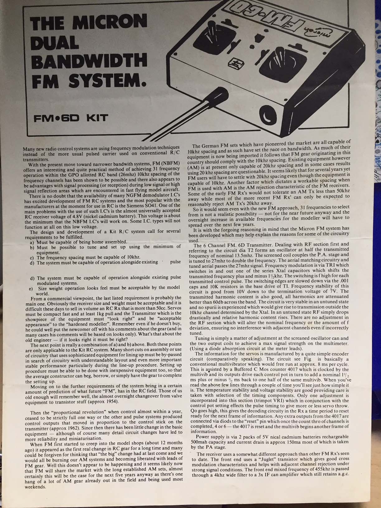 My FM-6D transmitter used to have an aluminium plate with artwork having the Micron logo and FM-6D in big letters. After it fell off I didn’t do the sensible thing and it got lost through several house moves. Does anyone have access to a photo or some sort of layout that would mean I could recreate it? The transmitter is looking uncomfortably naked and is calling to me that it deserves its original ‘clothing’!