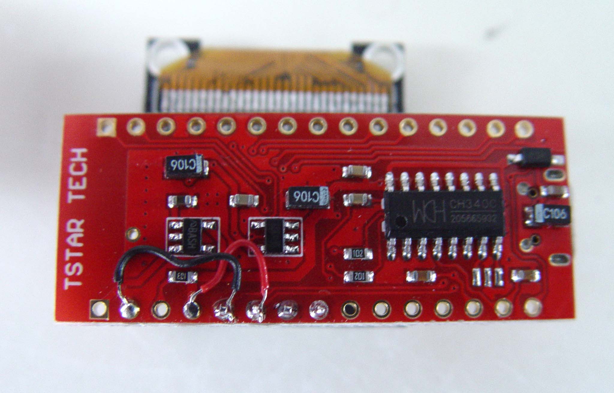 The attached version should work with the Tstar tech board and the small 128x32 OLED.