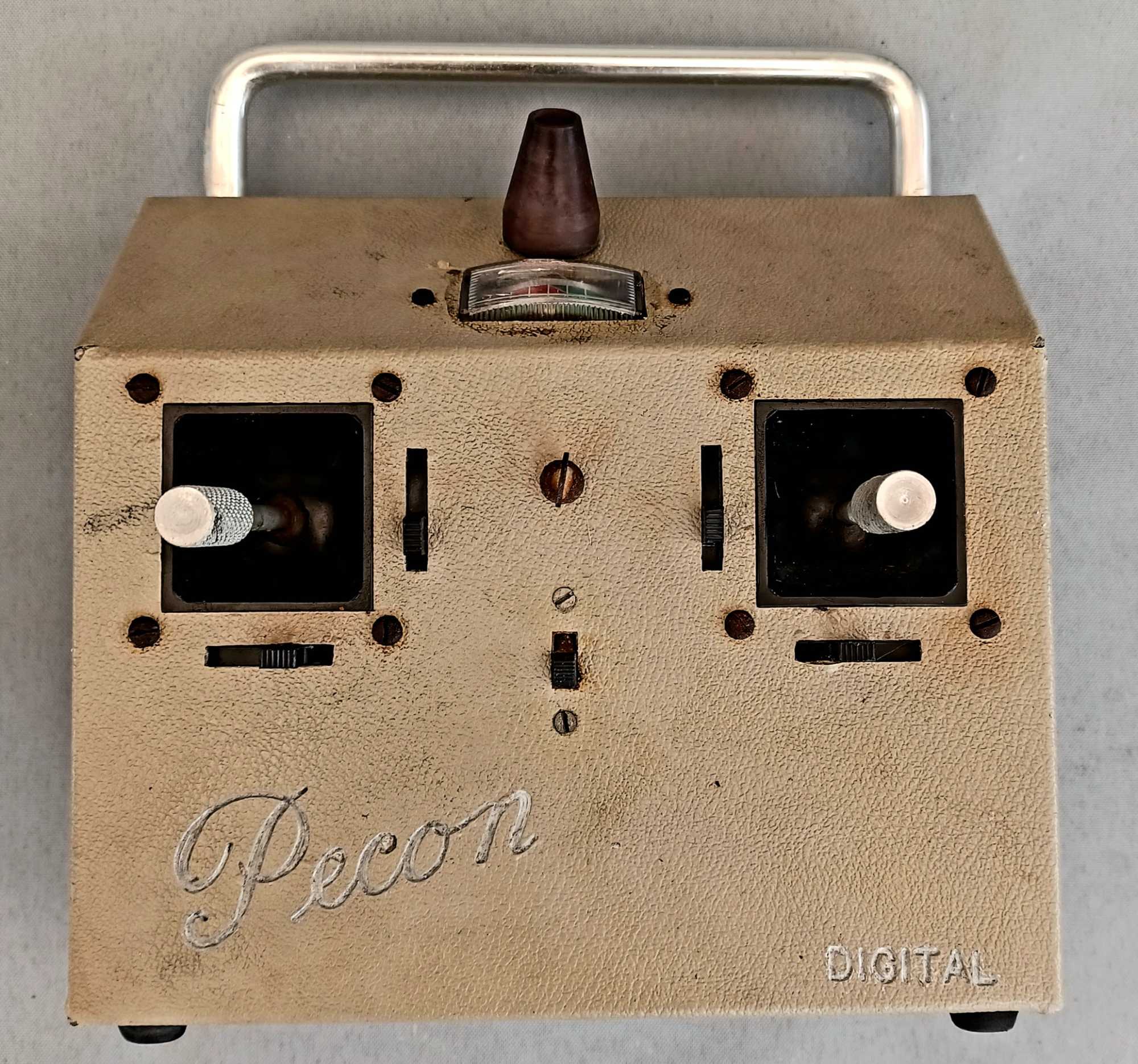 I was surprised a few years back when I found a Pecon transmitter, I'd seen the adverts, but wondered if any had ever been sold as I never saw one "in the day". I've now found a second one, this time in green and in far better condition than the beige one, except it's missing the stick end and the MacGregor stick shafts are far thicker than a regular joystick shaft, so I'll have to get my son to machine something.