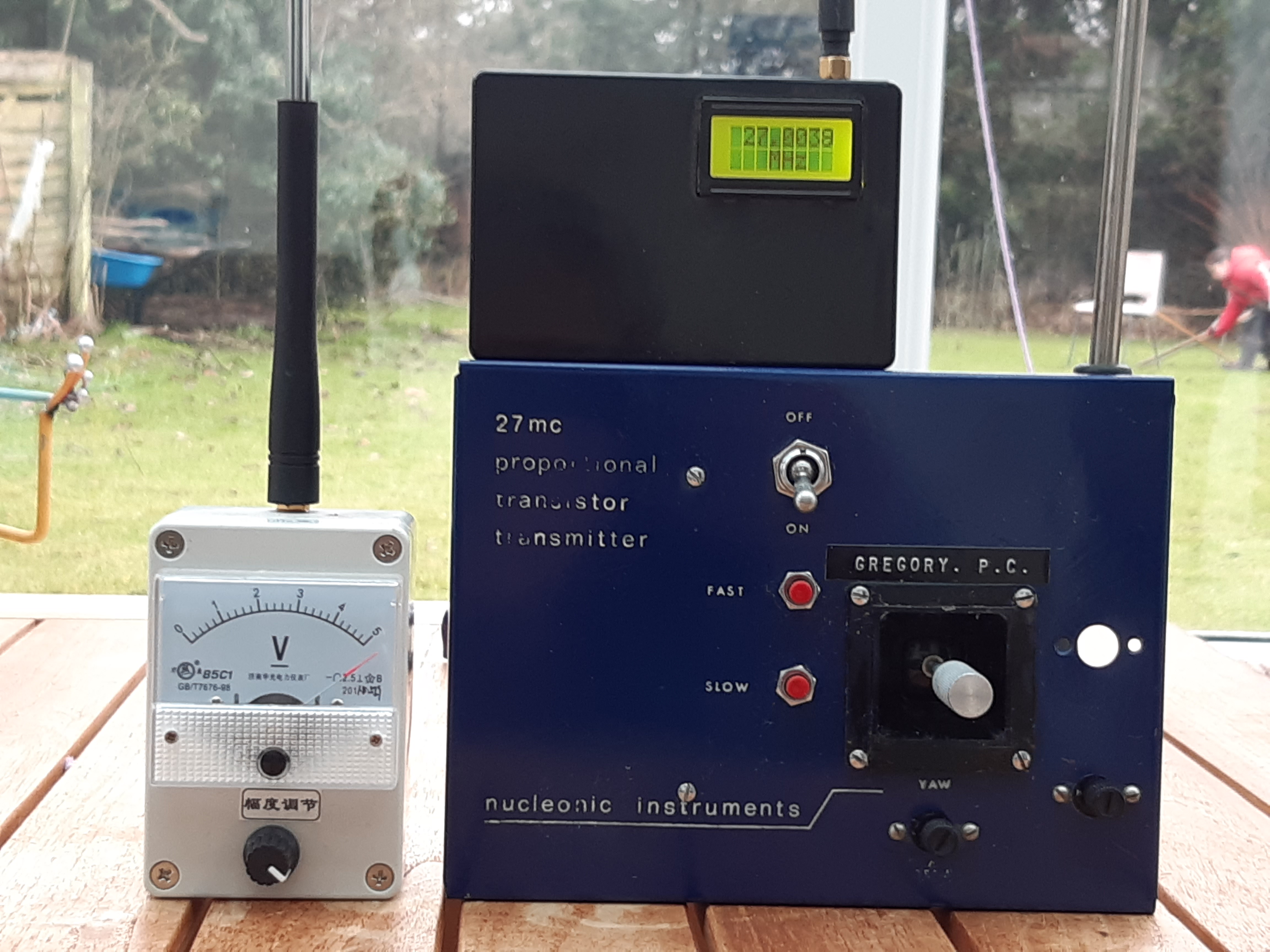 Update:- As Pete suggested, the first thing to check was the switch and lo and behold.... that was the problem! I replaced the switch and tried again and it works! The frequency meter showed it initially on 16MHz but after a while it settled on 27MHz and the Field Strength meter showed a good strong signal........