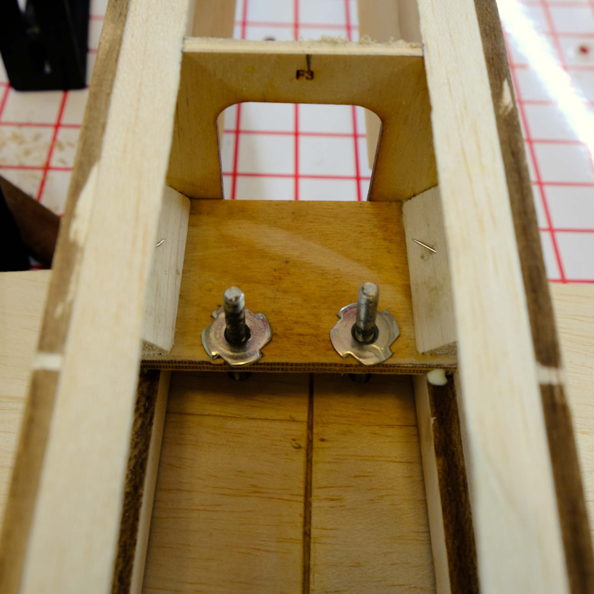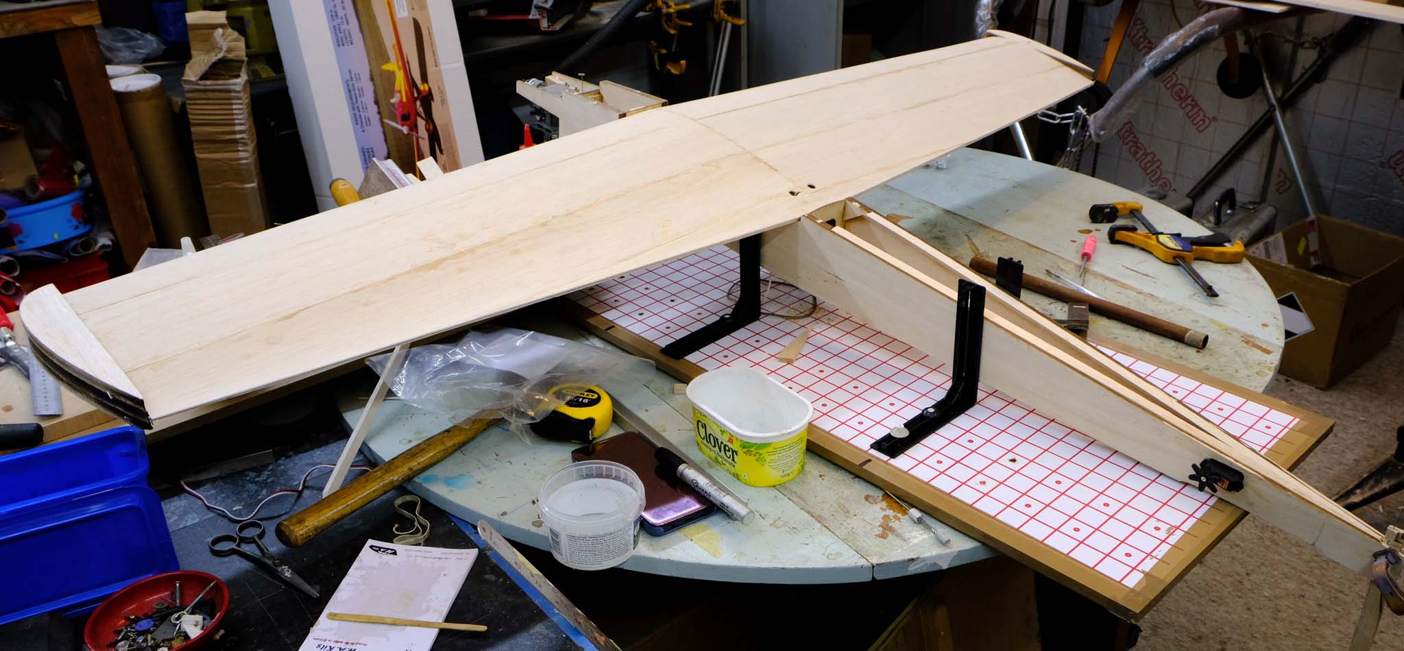 The tips were added to the completed wing structure and the rear wing hold down fitted after checking the squareness of the wing to the fuselage from tips to fin post and F1 centrelines.