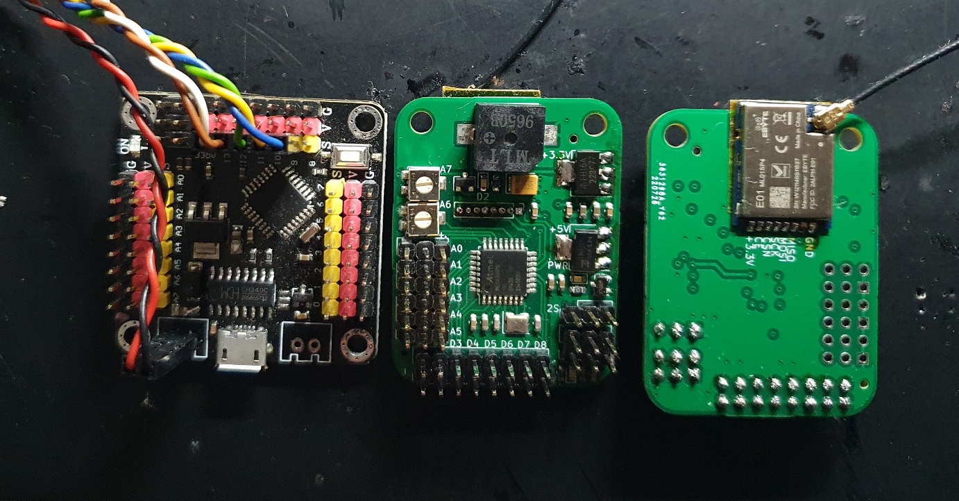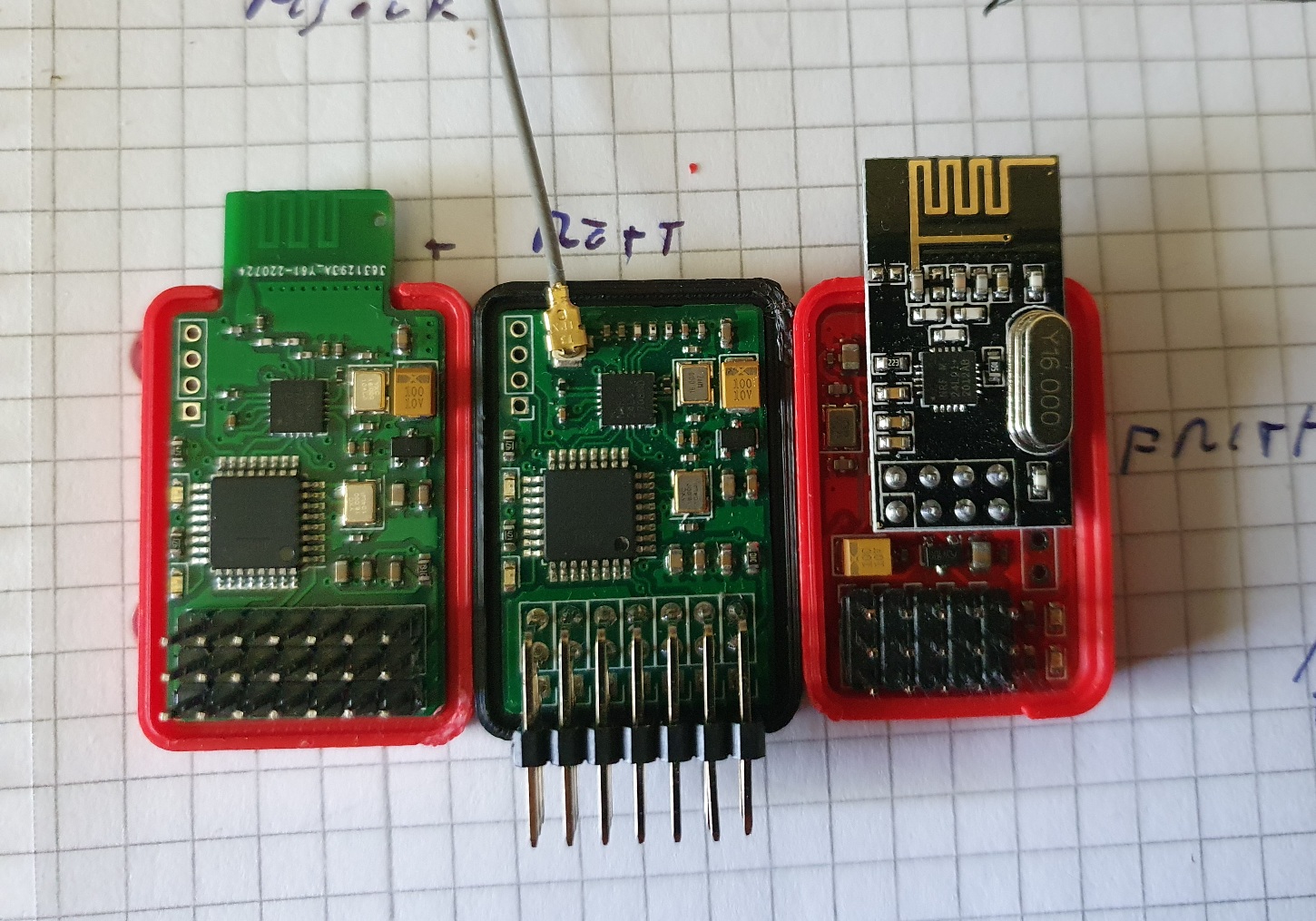 What you see in the picture are the 3 versions of Rx, all based on an ATmega88PA and Nordic nRF24L01+ , the sketch utilize 6016 bytes of 8192 available