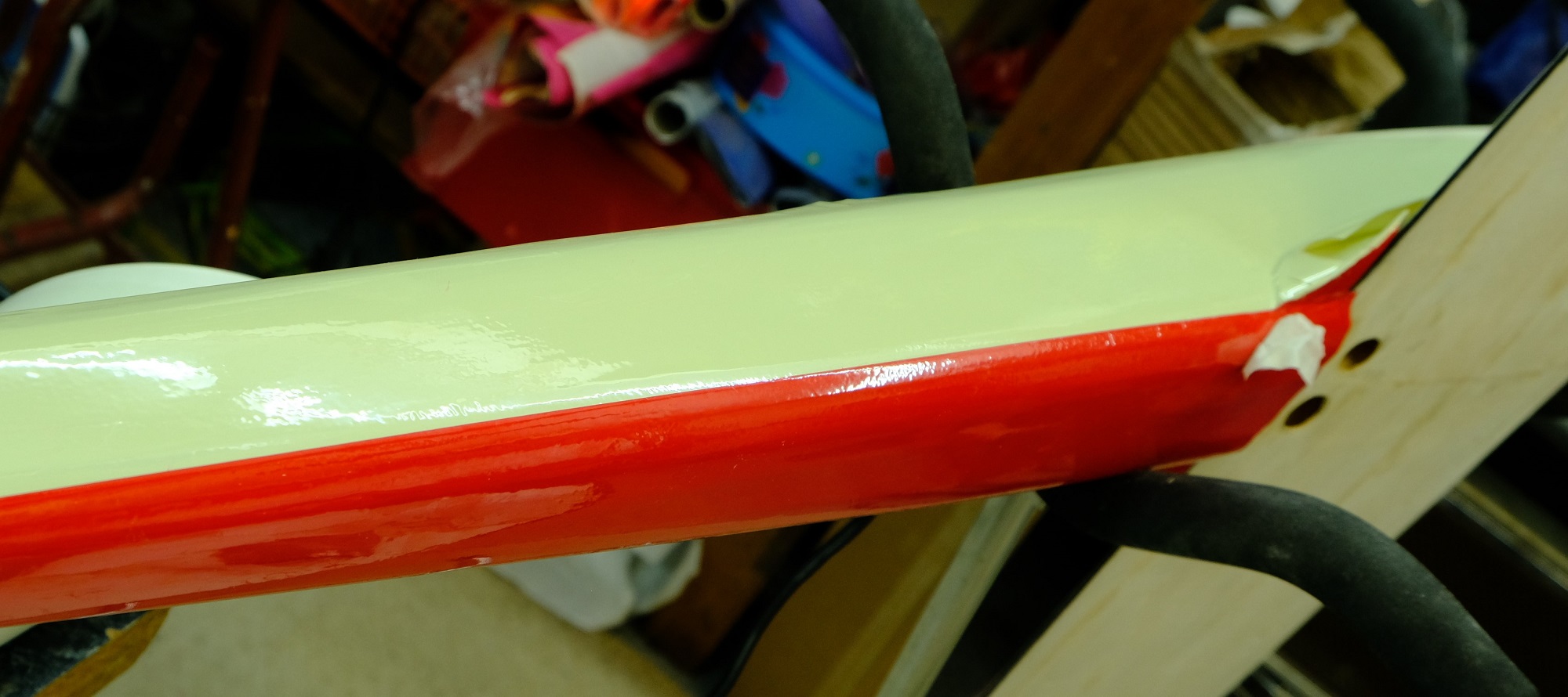 I covered the fin and strake separately and using epoxy on the fin and aliphatic on the strake, these were allowed to dry
