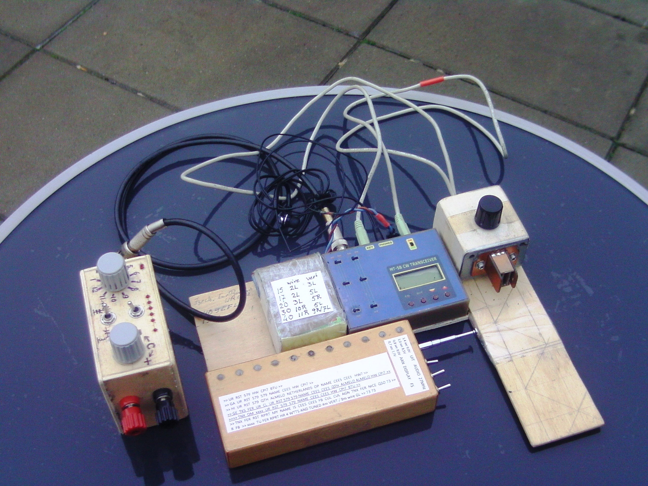 The set is powered from a 2500 mAh battery and serves for outdoor use with a wire antenna that I shoot into a tree with a catapult, for example or a 5 a 6 m vertical.