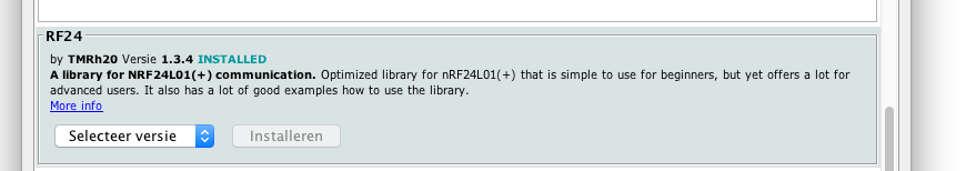 I found the RF24 in my Arduino library manager: And compiling the sketches is ok, so it recognises nRF24L01.h and all is fine.