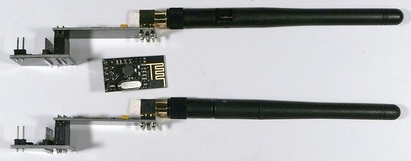 For the transmitter, especially smaller ones, here's the 'compact' arrangement of the NRF24L01+PA and its piggy-back adapter board again, taken from the hybrid thread: