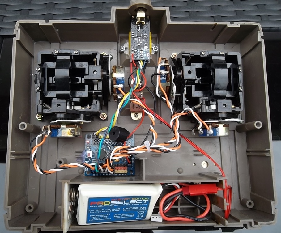 Mine will be a 2-channel version, but all the electronics and code are there to expand it to a full 4-channel propo Tx, all I will need to do is install a second stick unit and a third rate pot (and stuff it in a larger box..).