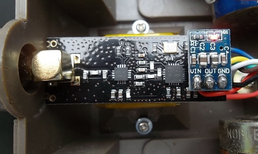 ...the only untidy bit was tagging on the neg wire to the NRF corner terminal, which is one of the two standoff pins for the regulator: