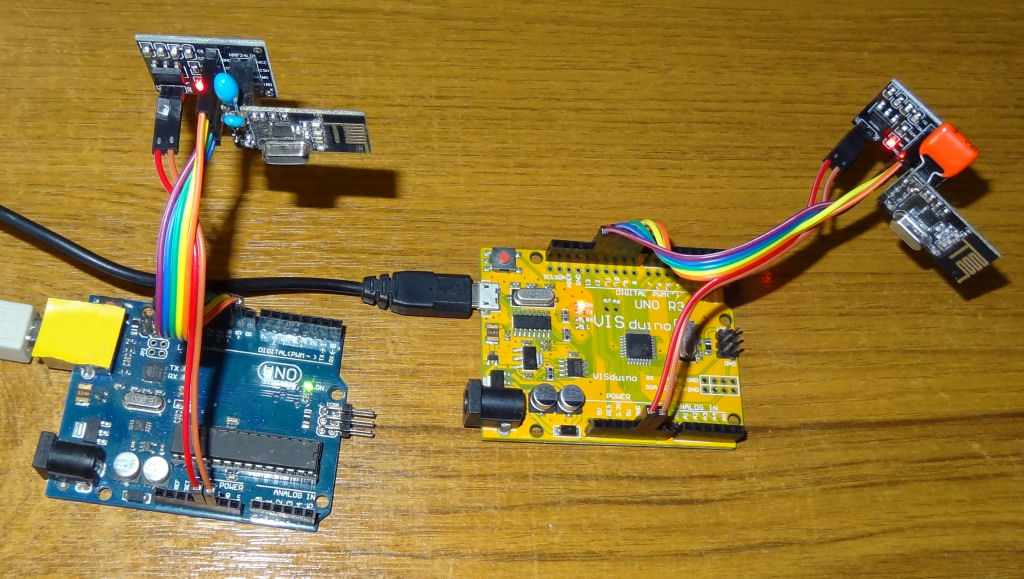 I've got very excited, seeing on this forum, the wonderful things people are doing with these modules. With some experience of Arduino it looked like I could embark on a number of exciting new flying projects. However I have run into a brick wall. Started rather grand but have now boiled it down to a bare bones sketch and still getting nowhere! For prototyping, I'm using two Arduino Unos with breakout adapters and NRL24L01 modules. From a wiring perspective things could not be much simpler.