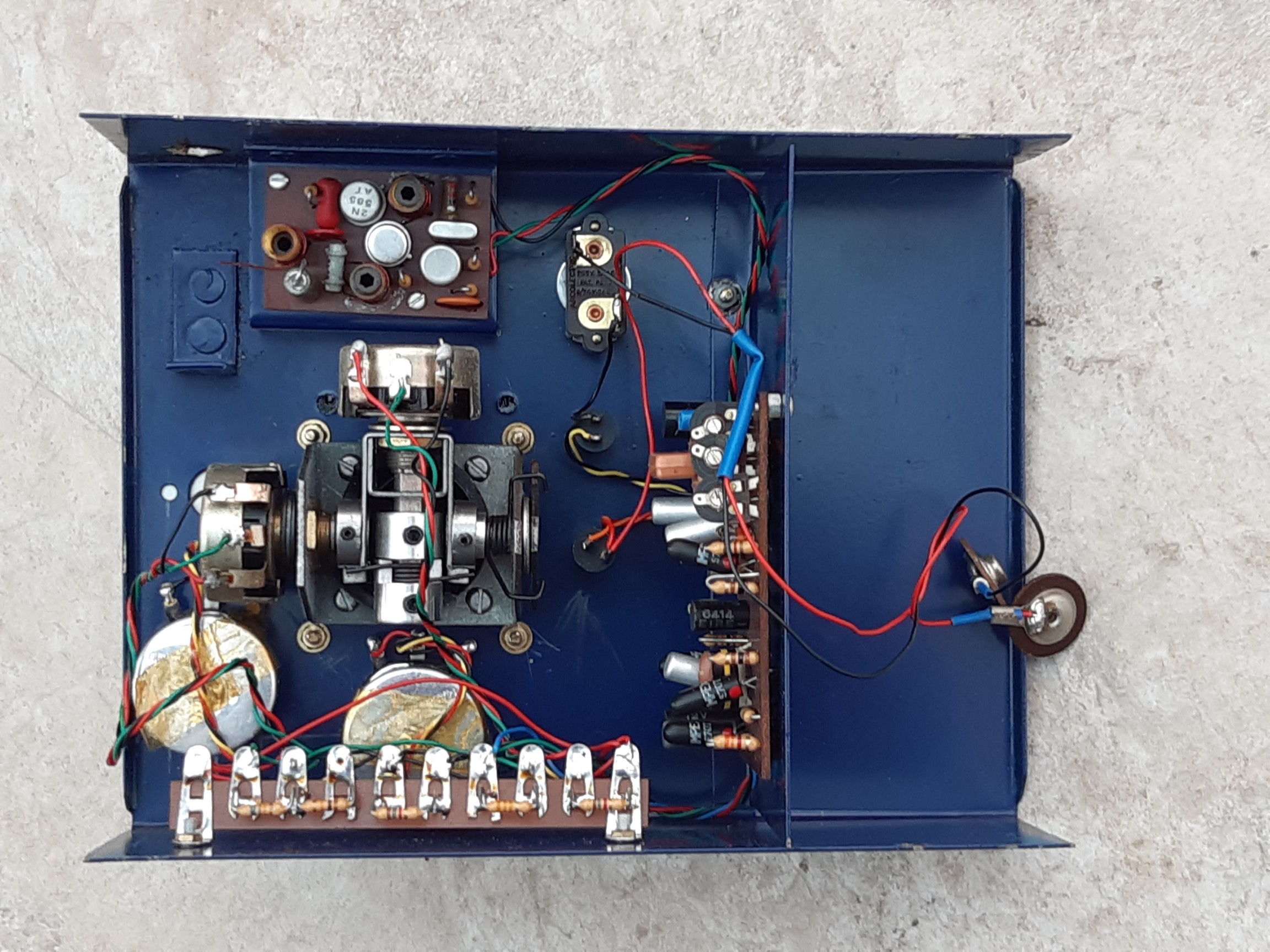 Many thanks for this Pete. Yes, you may be right in this being an early prototype. The stick unit is quite different to the one shown in the advertisement and the Elevator trim pot has been repositioned to where it is in my photo, the old holes being covered with Dymo tape! Having now looked at it in more detail, I think what has happened is that, prototype or not, the stick unit has been replaced. Both the stick and trim pots are physically very large and the replacement Elevator stick pot did not leave enough room for the trim pot in the original position which is why it had to be repositioned, leaving the old holes which were then covered with the Dymo tape (Frensham phone number!)