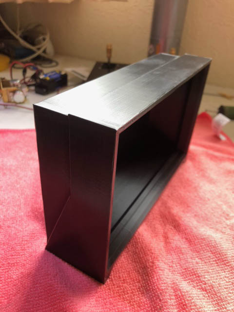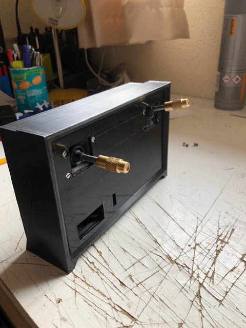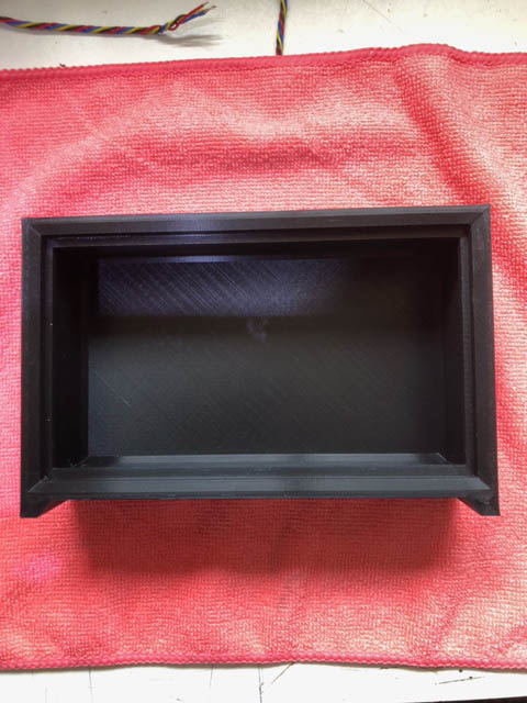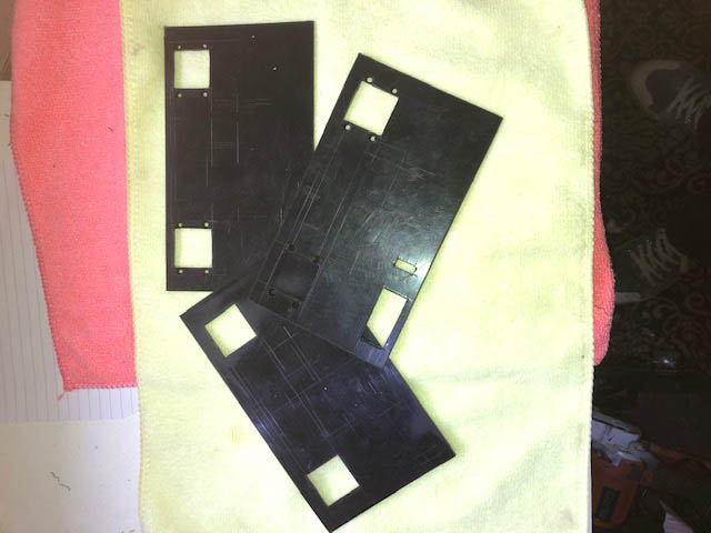 I managed to prime and fill the 3D printed case, used Halfords Filler/primer followed by a satin black overlay and finishing off with a satin clear coat, whilst drying I continued on with front panel (Mk 4), three other attempts of making the panel was using a plastic sheet which was not suitable as it warped and bent in heat so scrapped that and used an acrylic sheet the type they use for number plate blanks, still easy to work with , but stronger .