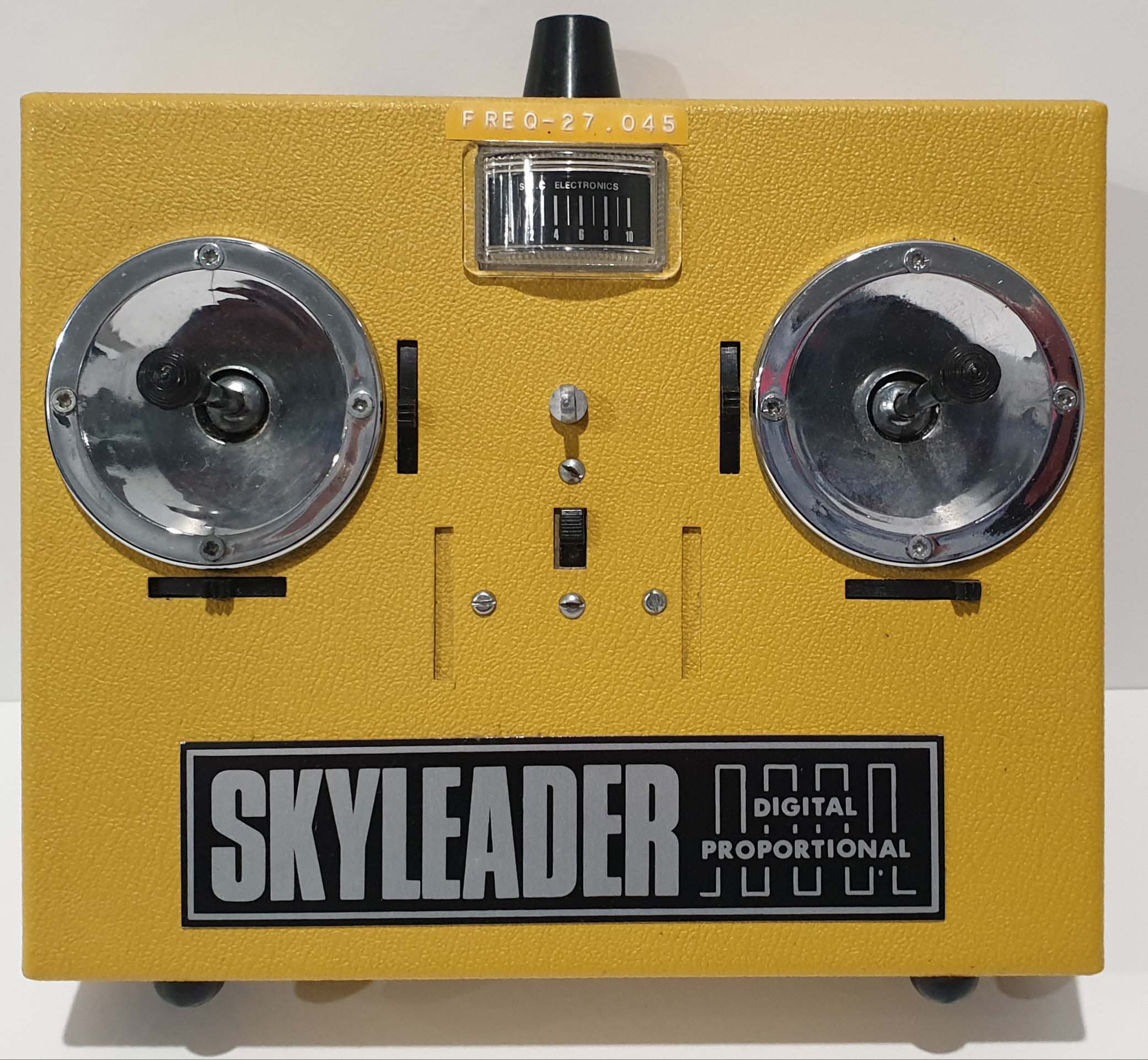 It's a Skyleader SL and were built between 1969 and 1972. It was the first Skyleader with the familiar yellow vinyl clad case and their first to use the Kraft Hayes joysticks. They used numerous different types of meter, so yours may look slightly different to some other SL. Sorry all my transmitters are in storage, so I've used an old photo of some of my SL.