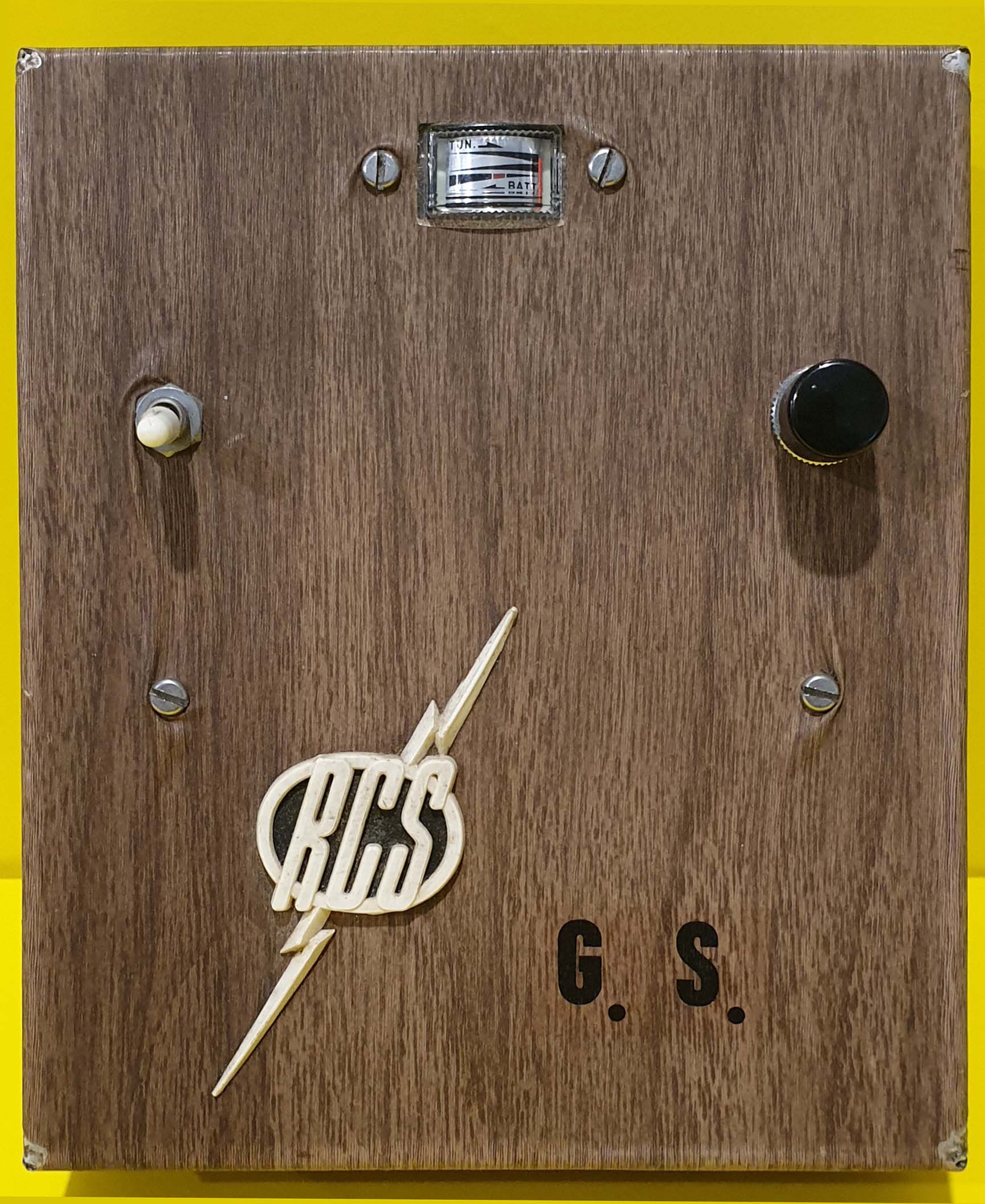 The inside is very clean and appears to be of the appropriate period. The meter looks similar to the meter off an early square brown plastic cased Futaba. Did the RCS S/C trannies have a meter?