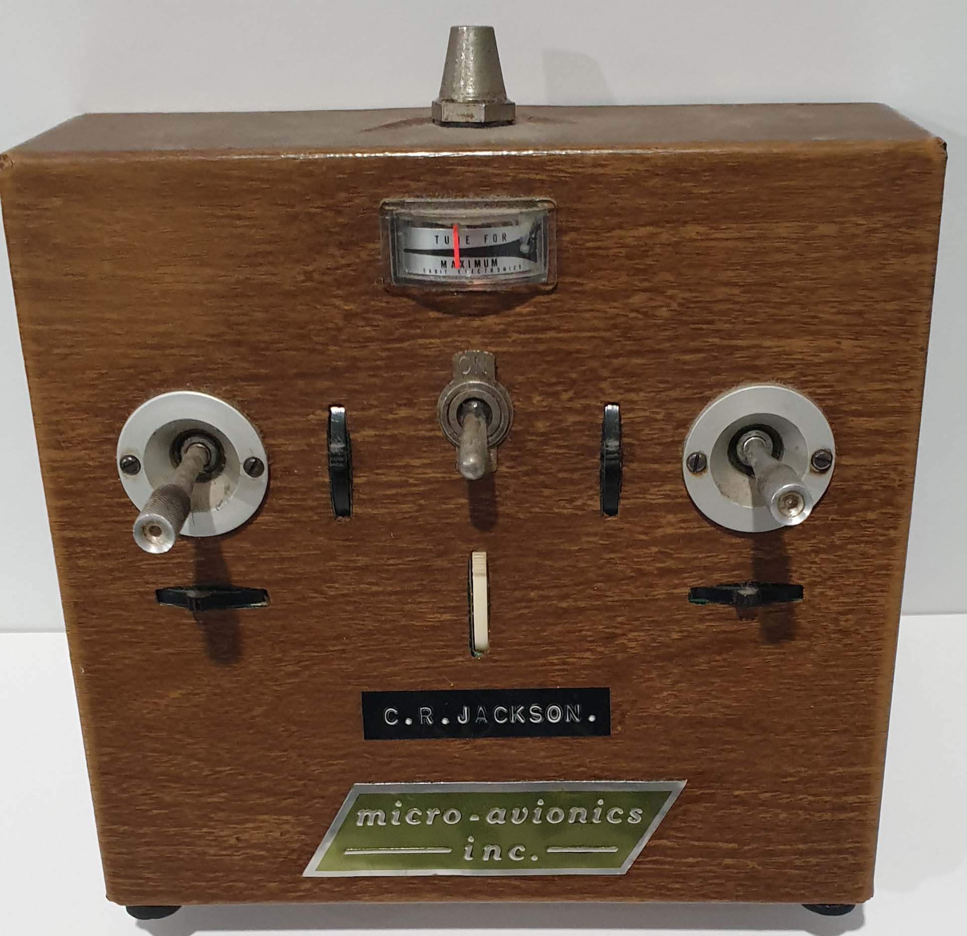 The 1st wood grained versions were the XL series, next, was the ill fated XL-IC versions with orange cased airborne components. Micro-Avionics got all their parts from Orbit, including the meters, cases, servo mechanics, sticks and hardware. As such, they used whatever meters they could get at the time. If Orbit was out of stock of the newer silver faced meters, they supplied the earlier white face meters. Later, they ordered green/black meters for just the Micro Avionics, but ran out of stock and went back to using the earlier meters which they plenty of in stock. Electromechanical Corp of Perkasie Pennsylvania made these meters and they were used in Kraft, EK Logictrol, Orbit, RS, and many other USA brands. They could be special ordered with your company name and logo on the meter, but that took time and was expensive, so many companies, like Orbit, ordered the generic ones when they needed them right away.