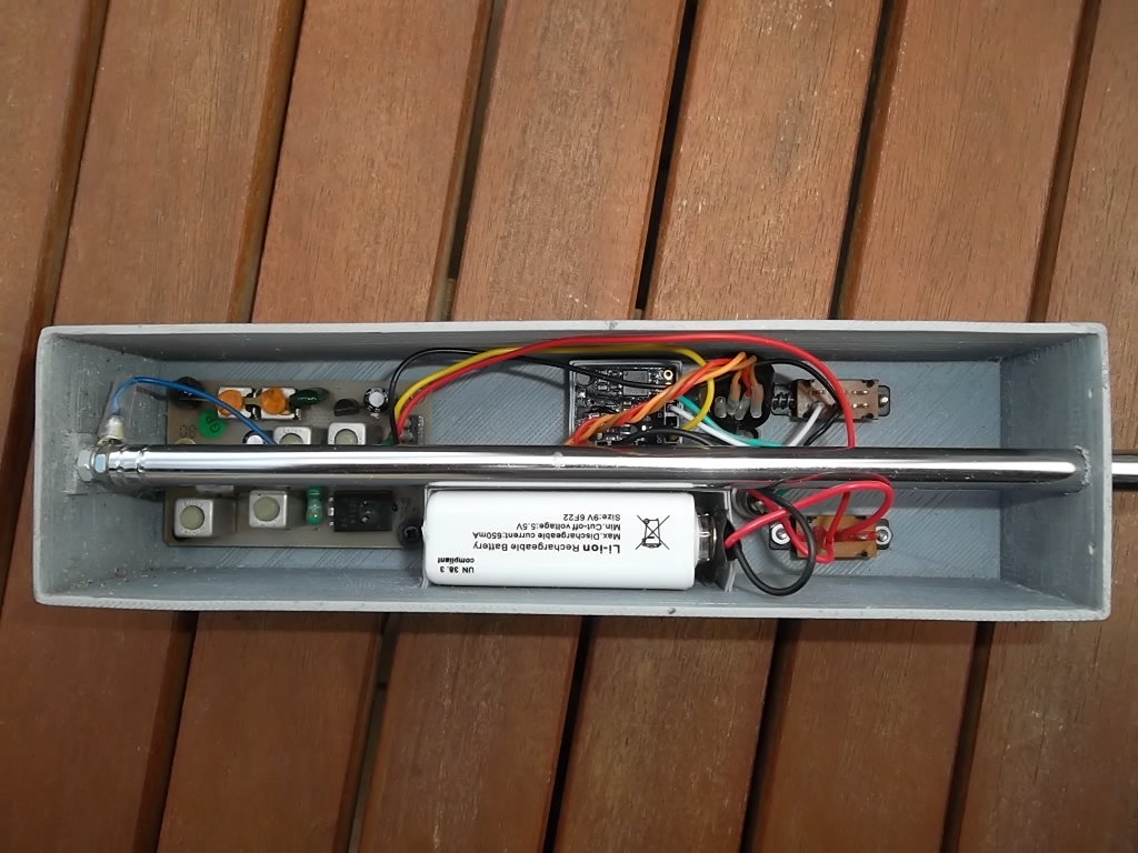 The enclosure is 3D-printed. I made the drawing using OpenSCAD.