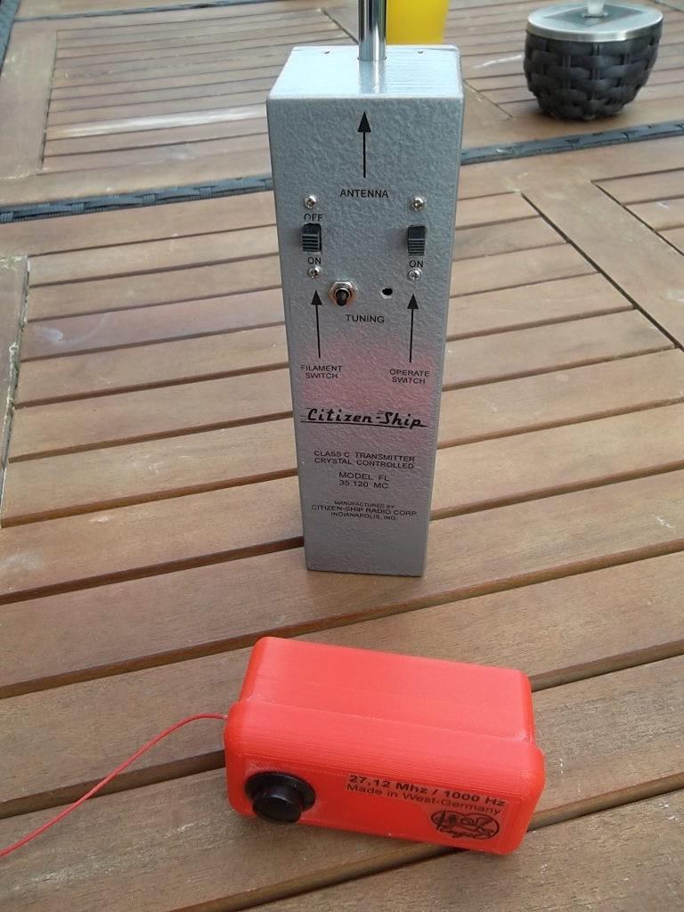 The time has come for some "new" replica transmitters. Now it is a more accurate one of the Citizen-Ship tranny. It is on 35MHz using a Futaba style module and an Attiny85 as the brain.